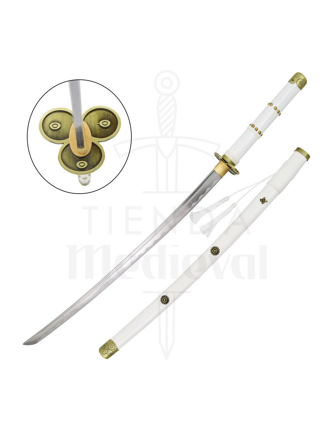 Entdecke die Katana Enma von Zoro, ein wahres Meisterwerk, inspiriert von dem ikonischen Schwert des bekannten Charakters aus One Piece. Zoro ist einer der bewunderten Krieger des Animes, bekannt für seine große Geschicklichkeit mit dem Schwert und seinen unerschütterlichen Geist. Diese Katana ist eine perfekte Hommage an sein Erbe.