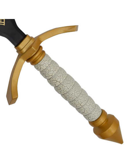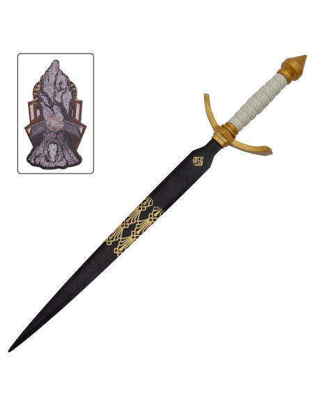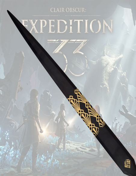 Hast du jemals das Gefühl gehabt, dass deine Umgebung eine Linie der Unterscheidung benötigt, ein Symbol deines Charakters und guten Geschmacks, das bei denen, die dich umgeben, Eindruck hinterlässt? Dieses Gefühl, dass der einfache Akt, einen Gegenstand zu platzieren, auch deine Position und deine persönliche Geschichte bekräftigen kann. Hier kommt ein Stück ins Spiel, das über die Ästhetik hinausgeht: es repräsentiert eine Haltung, eine Identität, die du intensiv und präzise projizieren möchtest. Die ornamentale Dagger Gustav Clair Obscur Expedition 33 ist viel mehr als ein dekoratives Element; sie ist das Vehikel deiner Vision, die darauf abzielt, Geschichte, Mysterium und Macht in jedem Detail, das du besitzt, zu erinnern. Ihr Finish in Schwarz und Gold, begleitet von einem geometrischen Muster und Symbolen, spricht von deiner Vorliebe für das Sofistische und Charaktervolle, kombiniert Kunst und Sammlerstücke in einem einzigen Objekt, bereit, in deinem Raum herauszustechen.