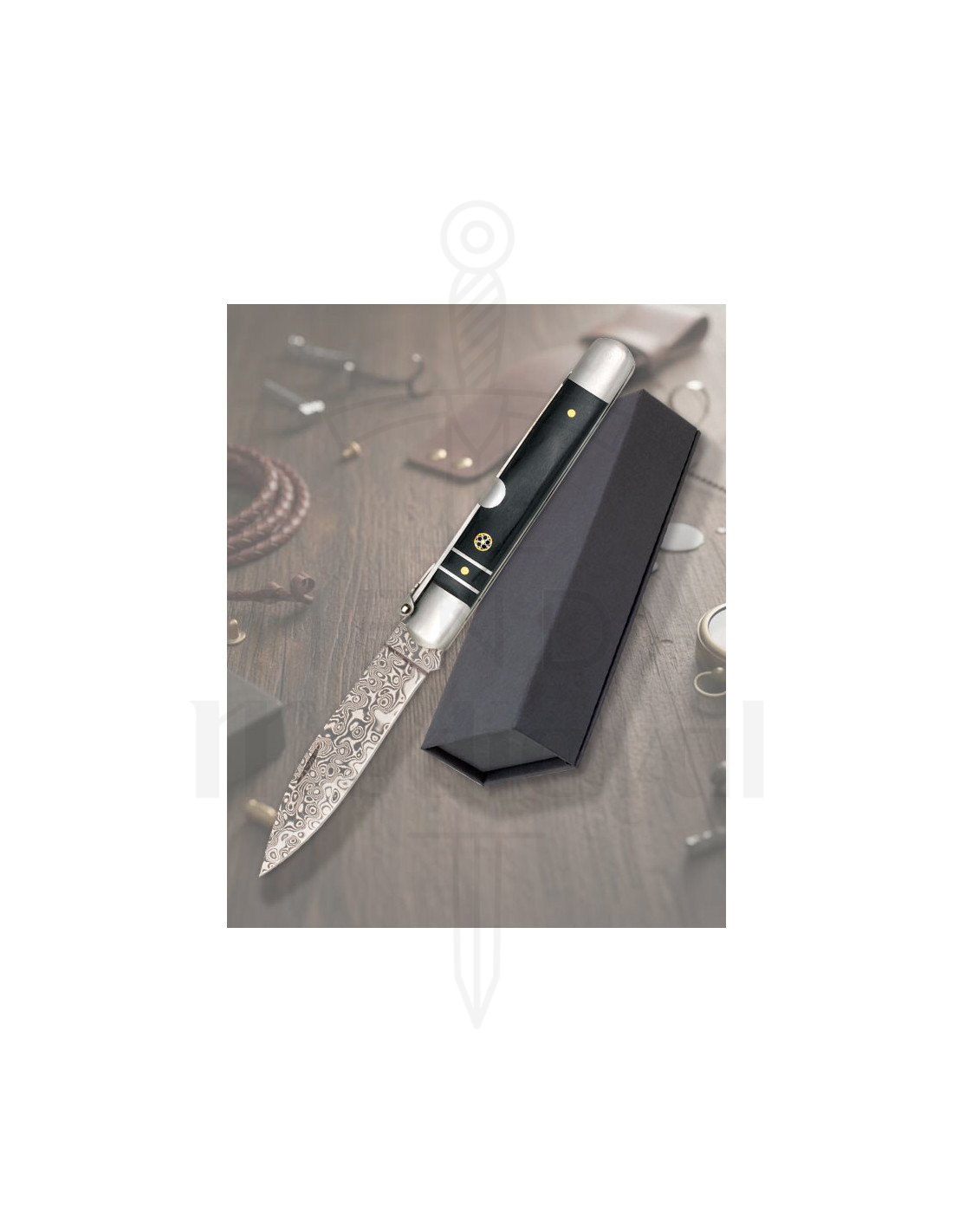 Die Klinge aus Damaszene-Stahl mit ihrem charakteristischen Muster bietet nicht nur eine einzigartige Ästhetik, sondern garantiert auch Langlebigkeit und einen scharfen Schnitt, der präzise Schnitte mühelos ermöglicht und die praktische Erfahrung bei anspruchsvollen und alltäglichen Aufgaben verbessert. Diese Schichtstruktur sorgt für Widerstand bei längerem Gebrauch und ein Finish, das mit Charakter altert.