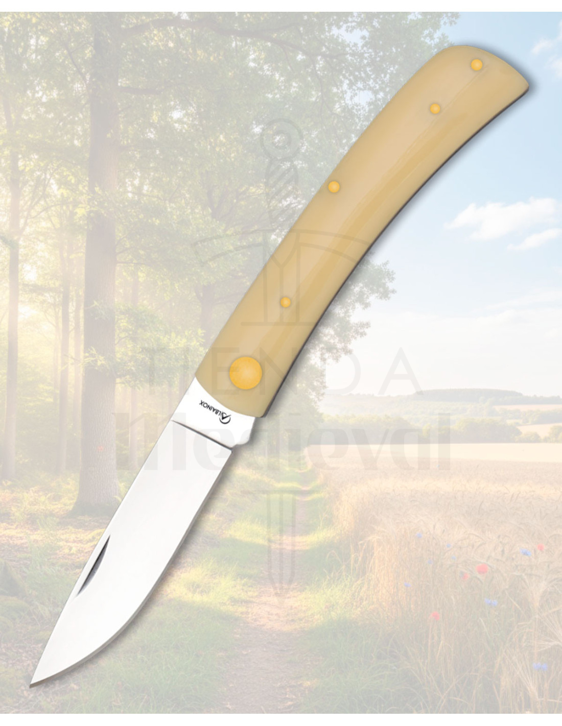 Das Albainox Feldmesser Modell Campaña kombiniert eine natürliche Handhabung mit einem präzisen Schnitt, dank seiner Klinge aus rostfreiem Stahl mit satinierter Oberfläche, die ein sanftes Gleiten und eine leicht zu pflegende Schärfe bietet. Diese Oberfläche erleichtert nicht nur das Schneiden, sondern verhindert auch störende Reflexionen und sorgt für eine saubere Ästhetik mit der Nutzung.
