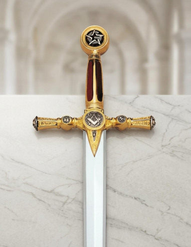 Dieses Zeremonienschwert ist die perfekte Ergänzung für Freimaurerlogen. Seine flammende Klinge und die Messingoberflächen verleihen ihm ein einzigartiges und markantes Aussehen.