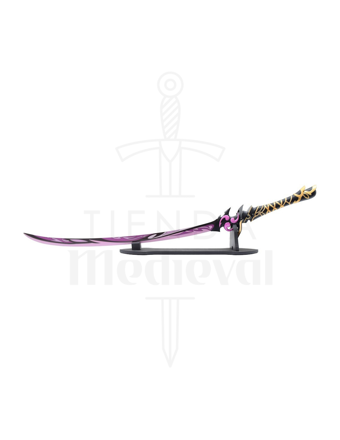 Fügen Sie Ihrer Sammlung mit dieser dekorativen Nachbildung des Musou Ishin Schwertes von Raiden Shogun, inspiriert von Genshin Impact, einen Hauch von Majestät und Macht hinzu. Dieses Schwert fängt das Wesen eines der eindrucksvollsten Charaktere des Videospiels ein, mit einem Design, das seine Größe und Eleganz in jedem Detail widerspiegelt.