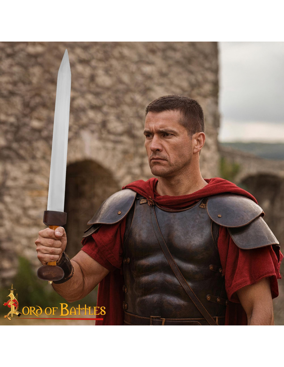 Dieser Gladius, inspiriert von den Funden in Pompeji, repräsentiert die Ausführung, die die Legionen zwischen dem 1. und 3. Jahrhundert n. Chr. ausrüstete, eine Form, die für ihre Wirksamkeit in der Formation bekannt war und deren geradliniges Design kräftige Stiche begünstigte. Für Geschichtsinteressierte und Reenactors stellt sie ein Stück mit archäologischem Hintergrund und eine eindrucksvolle Präsenz dar.