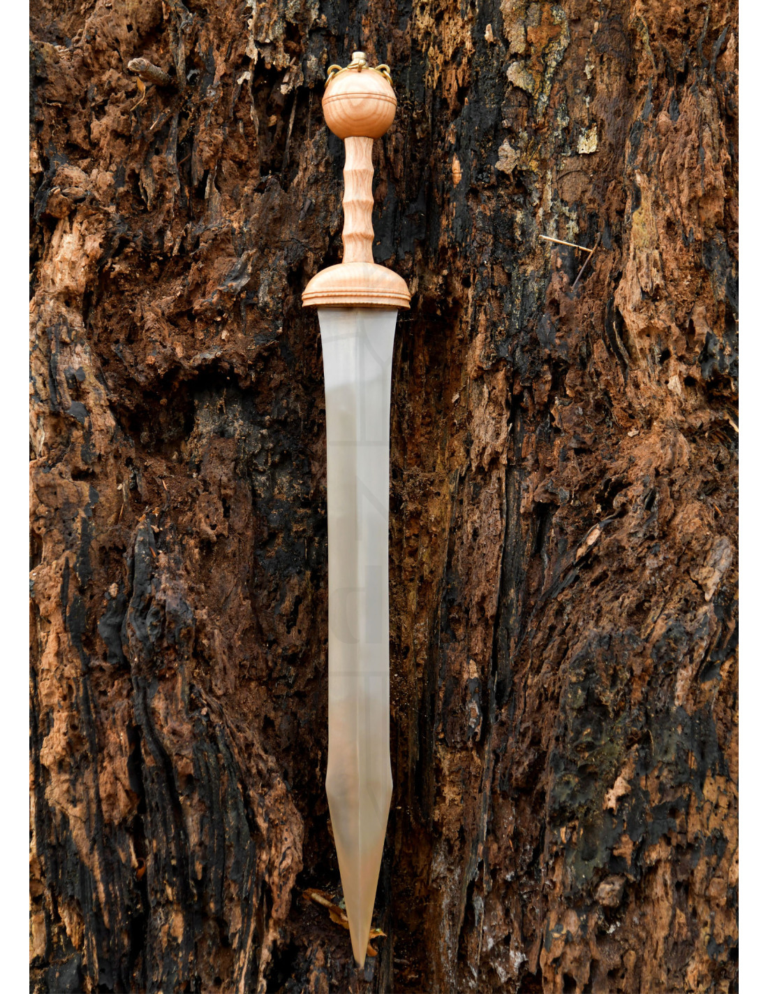 Diese Replik bietet ein Gefühl von Solidität und Authentizität, das eine einfache Ausstellung in ein unvergessliches Erlebnis verwandelt, perfekt für Sammler und Enthusiasten. Der anatomisch gestaltete Holzgriff gewährleistet einen bequemen und sicheren Halt, während die vollständige Bauweise des Kerns sicherstellt, dass jede Bewegung fest und ausgewogen anfühlt, ideal sowohl zur Schau in einer Vitrine als auch zur Ergänzung eines historischen Outfits.