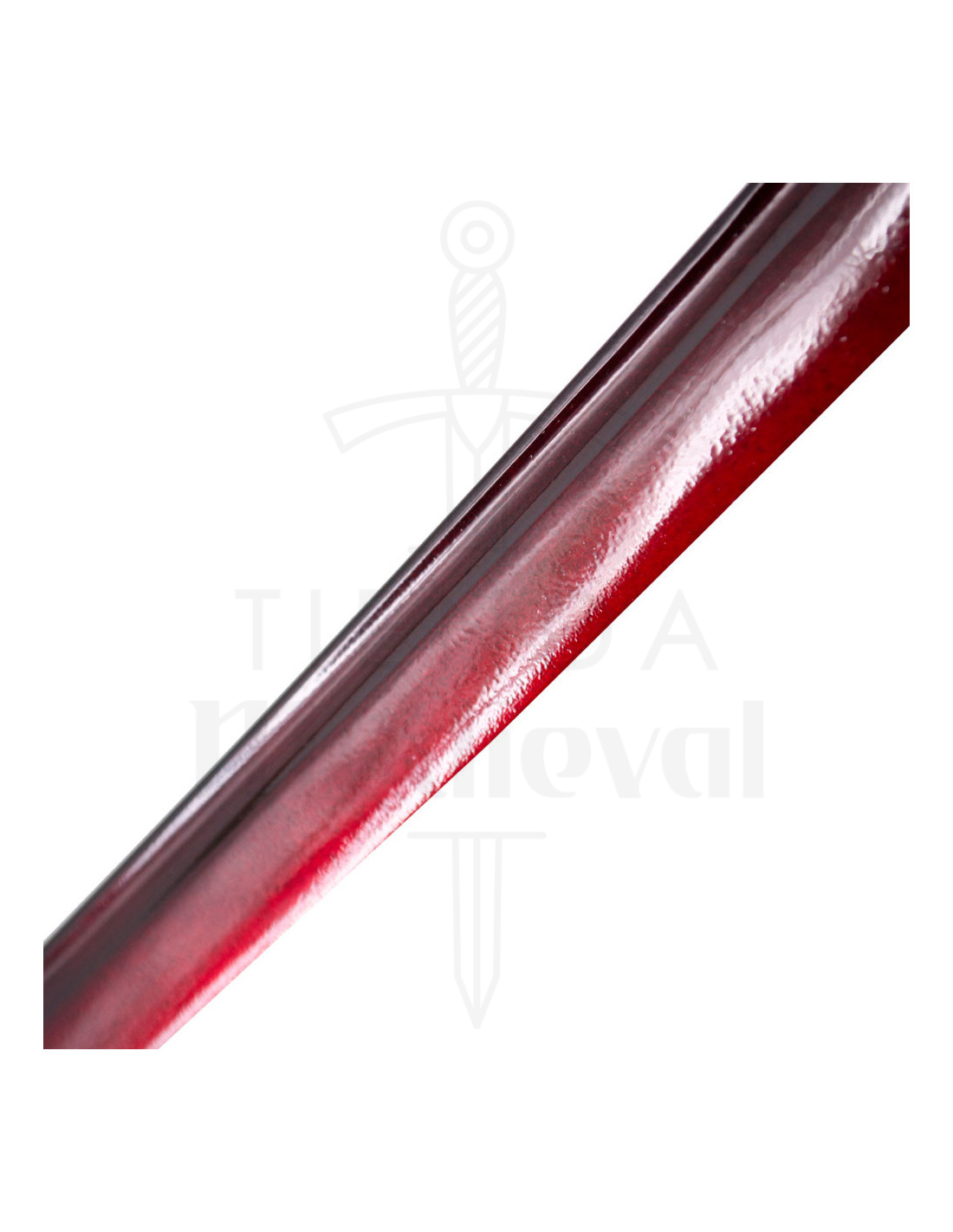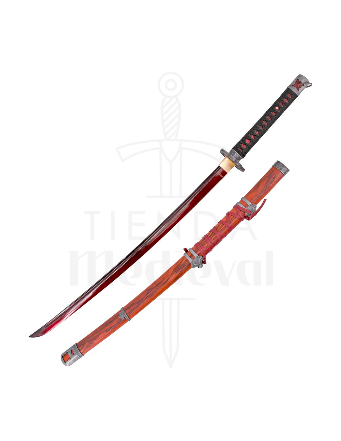 Die geschärfte Klinge aus 1045 Kohlenstoffstahl, bekannt für ihre Haltbarkeit und Widerstandsfähigkeit, weist ein elegantes Granatfinish auf, das ihr ein einzigartiges und markantes Aussehen verleiht. Diese Katana ist nicht nur dekorativ: Ihre robuste und funktionale Klinge ist ideal für diejenigen, die eine Balance zwischen Ästhetik und Leistung suchen. Mit einer Dicke von 7,5 mm bietet sie eine Robustheit, die nur wenige Nachbildungen erreichen.