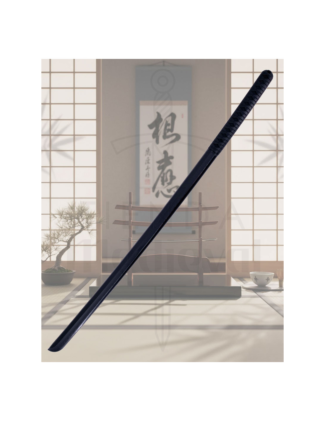 Der Griff mit Kreuzgeflecht erleichtert einen stabilen und ergonomischen Halt, gedacht für die Wiederholung von Techniken und die Kontrolle bei jedem Bewegungsablauf. Der runde Schutz zwischen Klinge und Griff bietet Schutz und taktile Orientierung, sodass jeder Übergang zwischen Schnitten und Blockaden natürlicher und präziser wird.