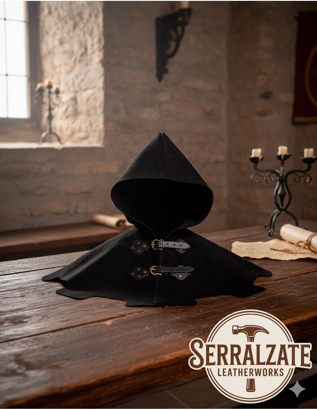 Serralzate LeatherWorks ist stolz darauf, handgefertigte Lederkleidung aus Spanien anzubieten, die Qualität und außergewöhnliches Design vereint. Dieser Gugel ist ideal für historische Nachstellungen, mittelalterliche Märkte oder einfach, um bei jeder Gelegenheit aufzufallen. Jedes Kleidungsstück ist einzigartig und spiegelt meisterhafte Handwerkskunst wider, sodass Sie ein außergewöhnliches Stück für Ihre Abenteuer bei sich tragen.