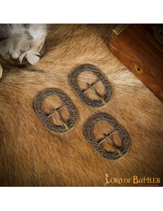 - Aus antikem Messing: Die Schnallen sind sorgfältig aus antikem Messing gefertigt, was ihnen ein gealtertes und rustikales Aussehen verleiht. Dieses Finish verleiht historischen Charme.