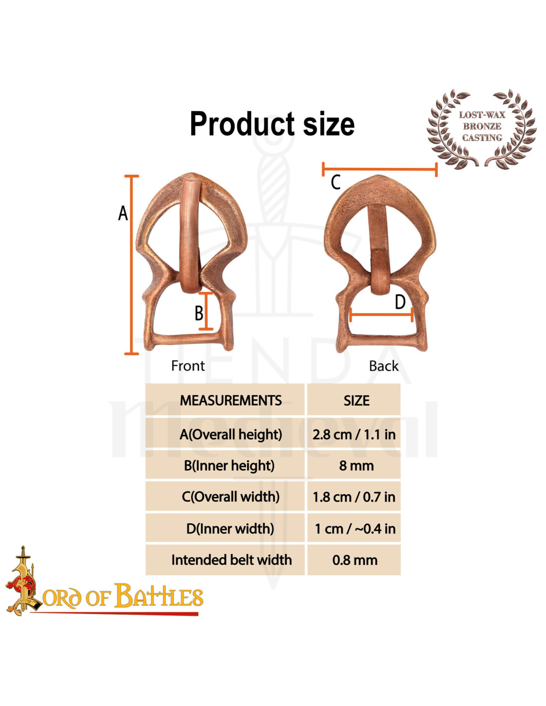 Ideal für LARP-Enthusiasten, Kostümbildner oder Lederhandwerker verbindet diese Schnalle Geschichte mit moderner Handwerkskunst und setzt den letzten Akzent, der Ihre Kreationen einzigartig macht. Fügen Sie ein Detail hinzu, das Tradition und Stil bei jedem Gebrauch vereint.