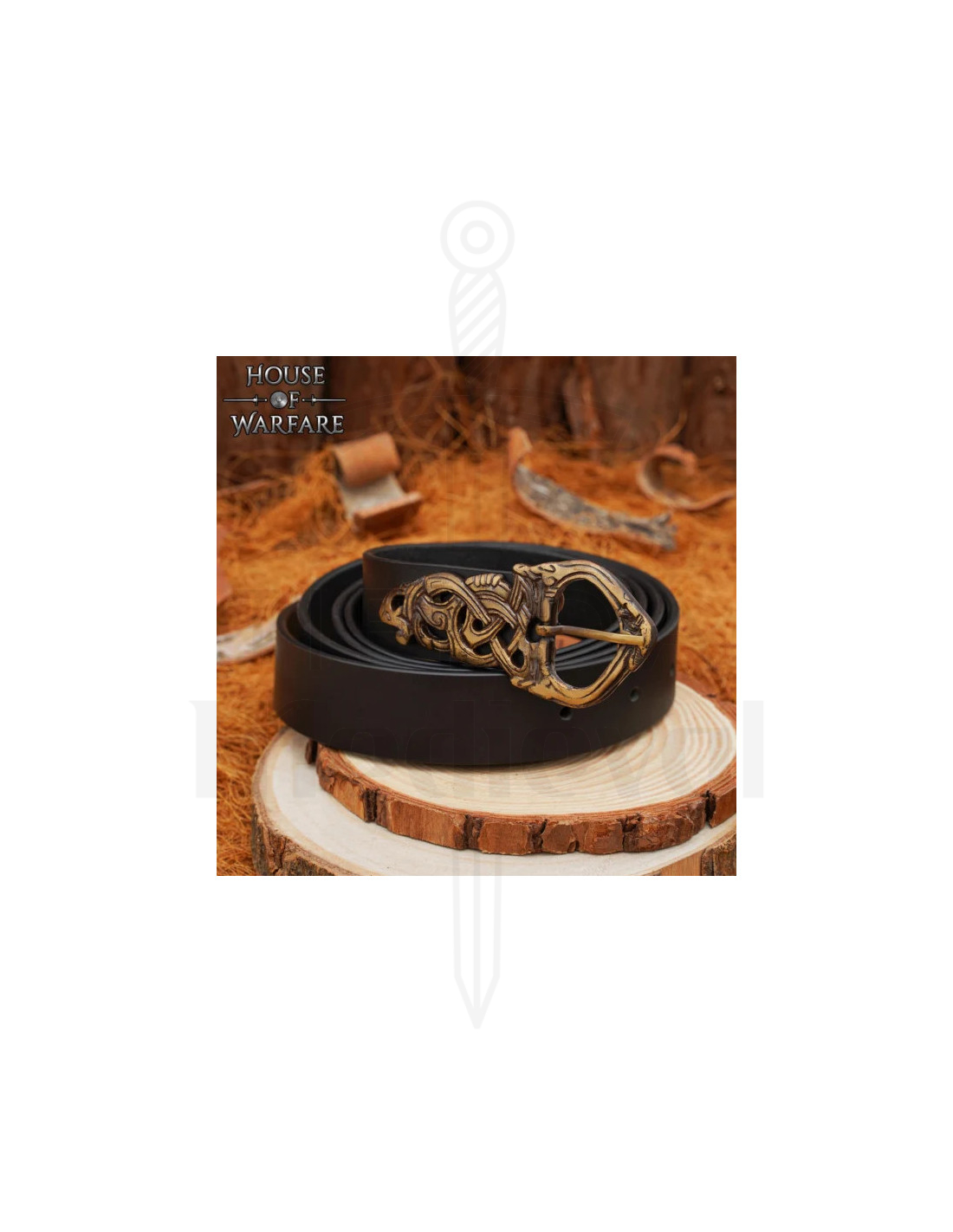 Die Präsenz des in Messing mit antik goldenem Finish geschnitzten Schlangen-Knotens sorgt für den visuellen Eindruck, den jeder sucht, der auffallen möchte, und verwandelt einen einfachen Gürtel in ein Stück mit Charakter. Das Tiermotiv und die Verflechtungen erinnern an die nordische Tradition und verleihen sowohl historischen Nachstellungen als auch modernen Looks mit Charakter eine authentische Note.