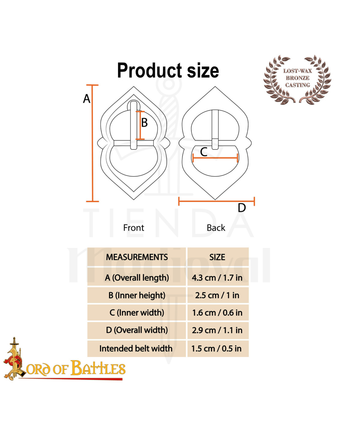 Wenn du nach einem Ort suchst, um die Mittelalterliche Gürtel Schnalle aus poliertem Bronze zu kaufen, vereint dieses Stück Authentizität und Praktikabilität in einem Format, das für diejenigen gedacht ist, die Wert auf Details legen. Sie ist perfekt, um ein Renaissance-Outfit zu vervollständigen, Charakter zu historischen Kleidungsstücken hinzuzufügen oder deinem Alltagskleidungsstück einen historischen Twist zu verleihen.