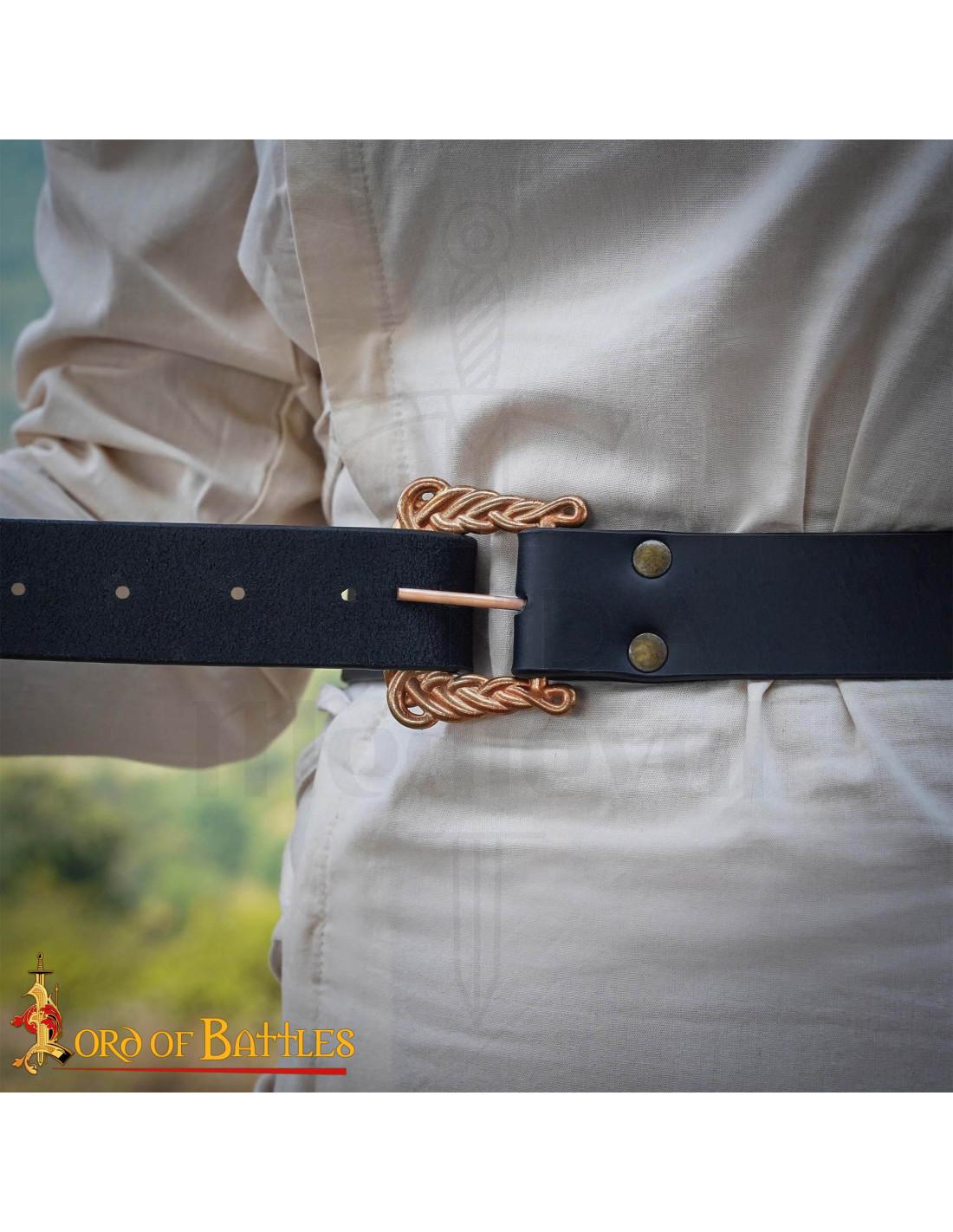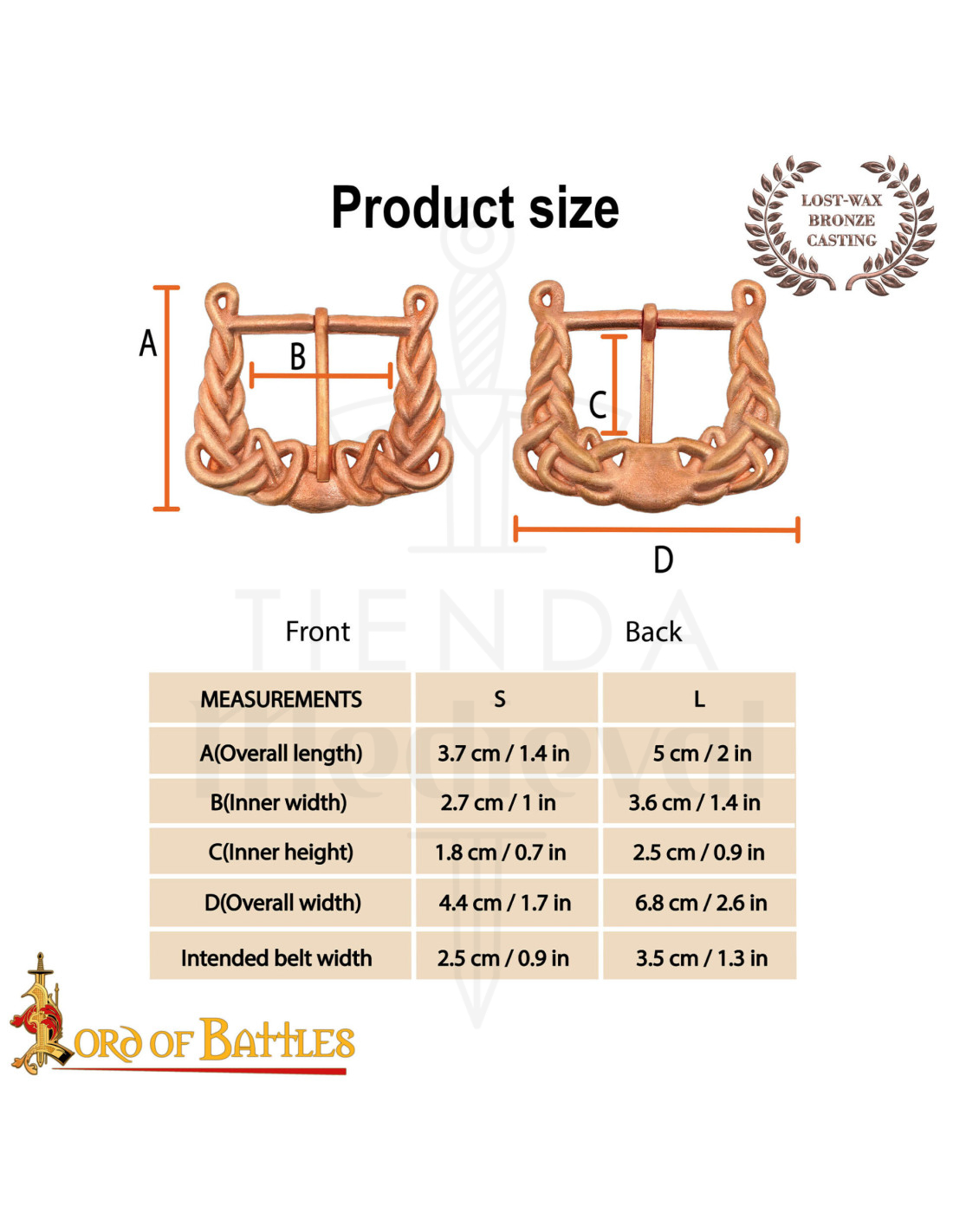 Das geflochtene Muster ist nicht nur dekorativ, sondern vermittelt Einheit und Stärke, eine Symbolik, die mit der nordischen Tradition verbunden ist. Der zentrale Balken und der solide Riegel ermöglichen einen festen Verschluss, und sie eignet sich perfekt zum Halten von Gürteln, Taschen oder Riemen bei Reenactments, Messen oder thematischer Kleidung und passt sich verschiedenen Riemenbreiten an, ohne ihre Stabilität zu verlieren.