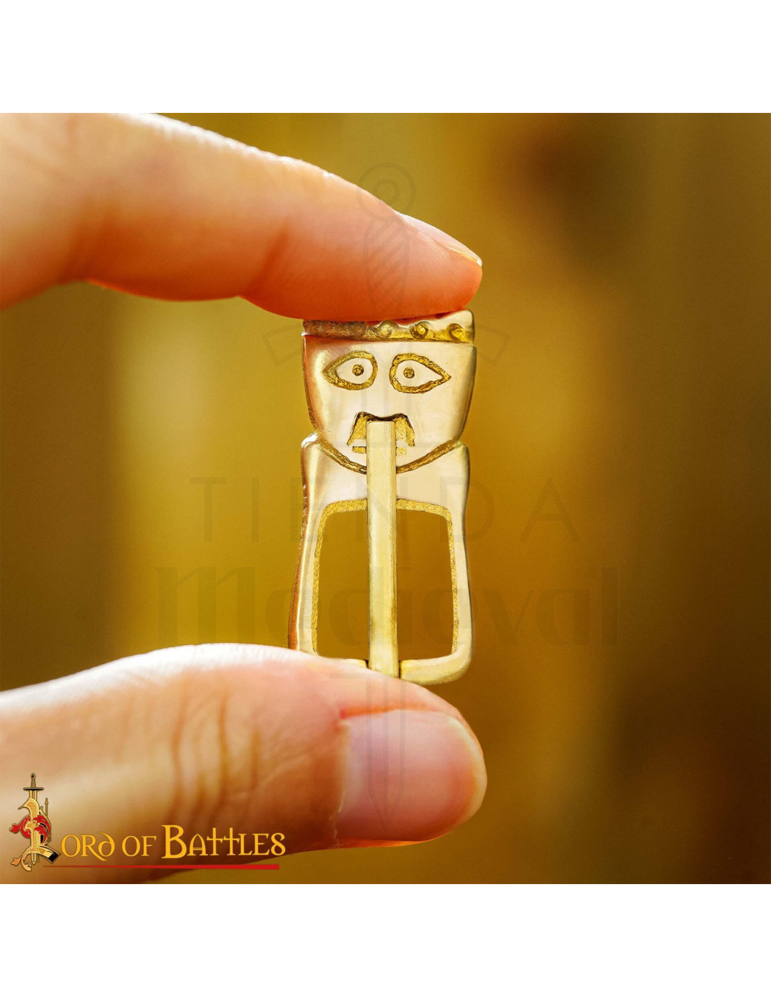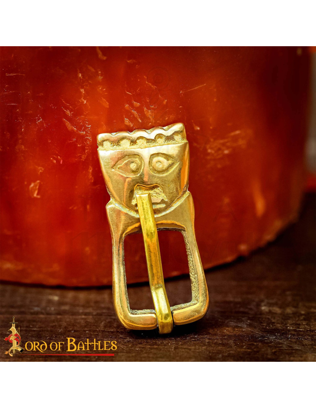 Wenn Sie daran interessiert sind, die mittelalterliche Messing-Schnalle 14. Jahrhundert, Kopf des Königs zu kaufen, finden Sie ein Stück, das Dekoration und Zweckmäßigkeit in Einklang bringt, perfekt zum Vervollständigen eines Outfits mit Authentizität. Inspiriert von archäologischen Funden aus dem 14. Jahrhundert in Europa, evoziert es die Ästhetik und Symbolik dieser Zeit, ohne die Praktikabilität zu verlieren.