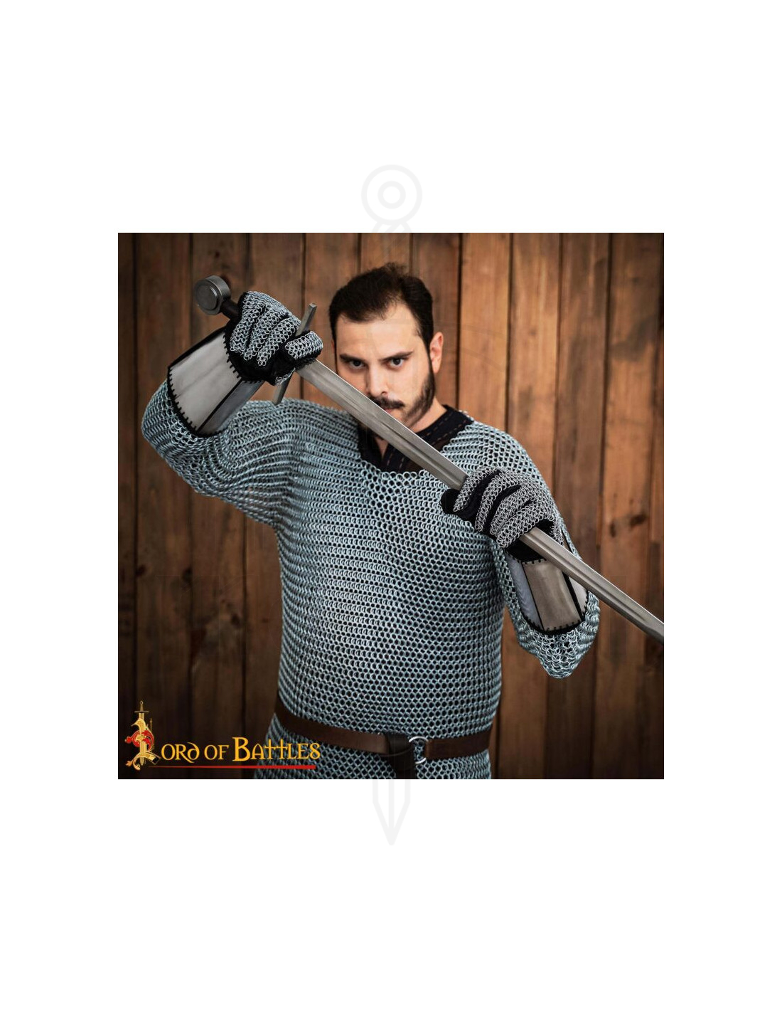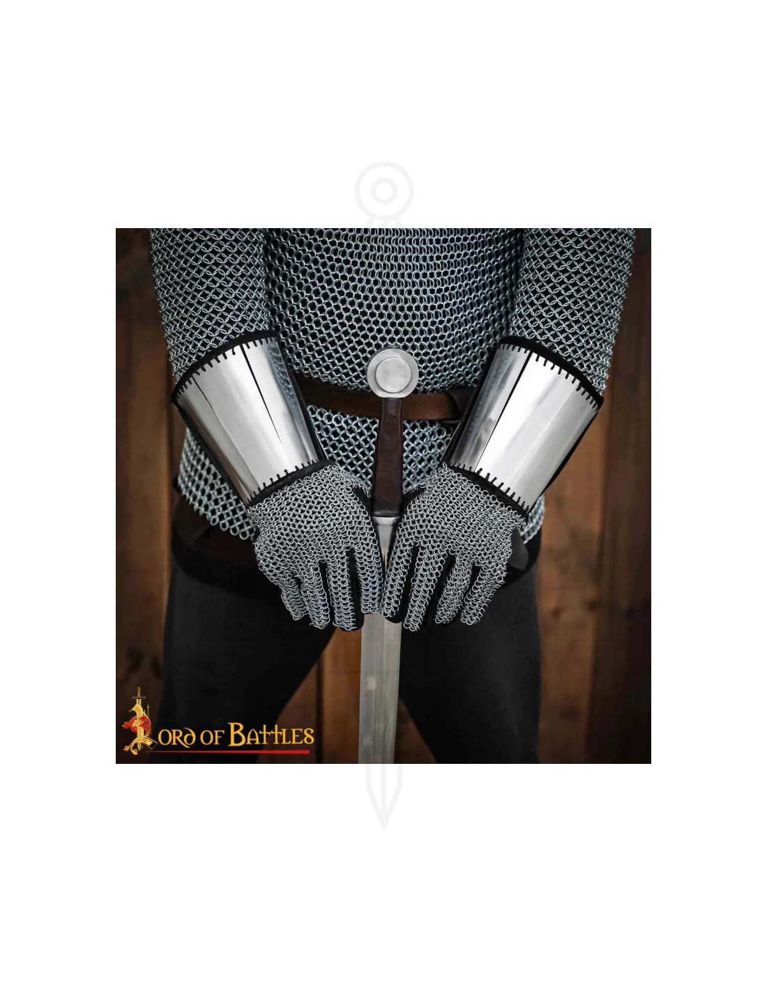 Kettenpanzerstulpen bestehen aus gespleißten Ringen mit jeweils 6 mm Durchmesser, die sorgfältig auf geschmeidige, aber feste Wildlederstulpen aufgenäht sind. Dies bietet Ihnen nicht nur den nötigen Schutz bei Ihren Reenactment- und Mittelalteraktivitäten, sondern sorgt auch für eine langfristige Haltbarkeit.