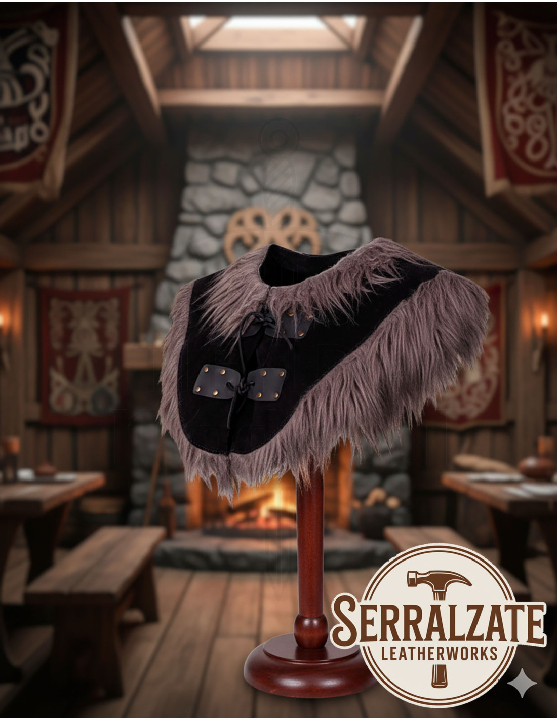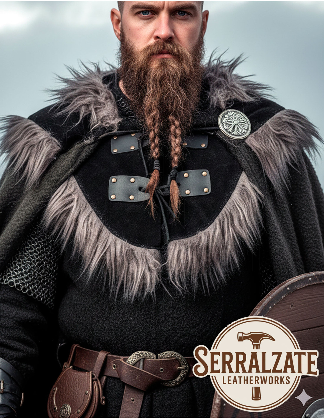 Entdecke das perfekte Gleichgewicht zwischen Eleganz und wildem Stil mit dem Gorjal Evaristo schwarzer Umhang mit grauem Fell von Serralzate LeatherWorks. Dieses Accessoire, handgefertigt in Spanien, kombiniert die Weichheit und Widerstandsfähigkeit von schwarzem Wildleder mit dem Luxus von grauem Kunstfell, das seinen Rand umgibt und ein visuell beeindruckendes sowie funktionales Stück schafft. Entworfen, um dich in kaltem Wetter zu schützen, bietet die großzügige Verarbeitung aus Kunstfell nicht nur Schutz vor Wind, sondern verleiht auch einen Hauch von Raffinesse.