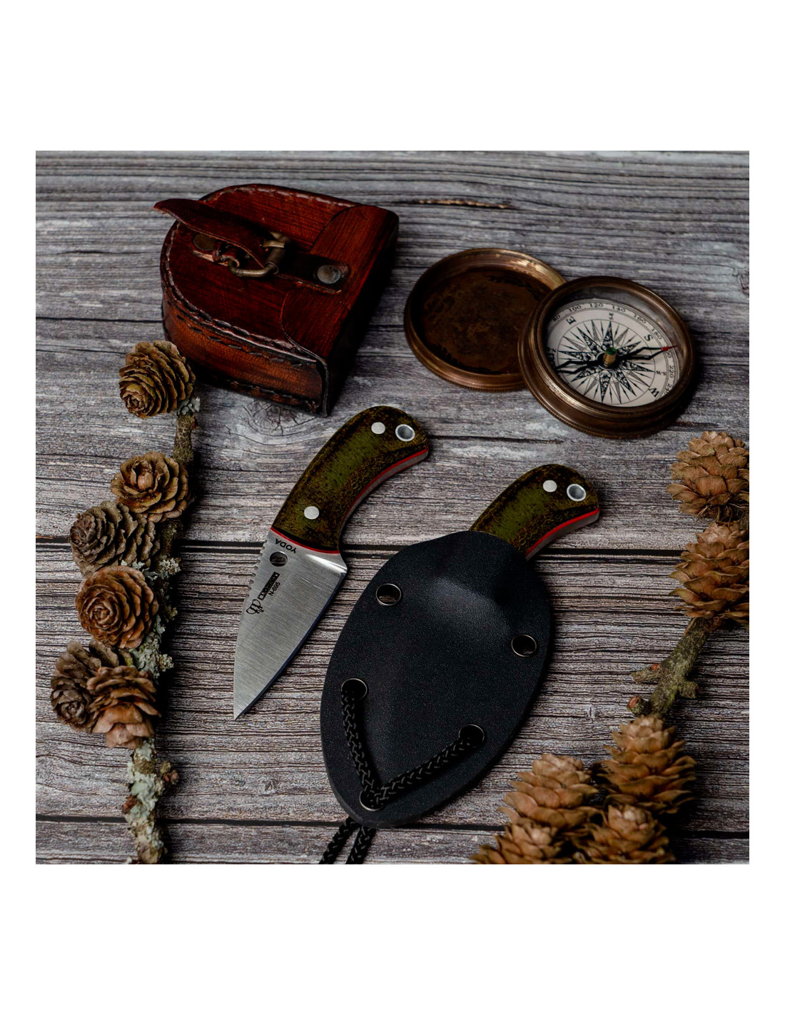 Das Cudeman Yoda-Messer mit Nadelspitze ist ein wahrer Schatz für Besteckliebhaber. Mit einem Design, das den weisesten Jedi der Galaxie ehrt, zeichnet sich dieses Messer durch seine satinierte Nadelspitzenklinge aus Böhler N-695-Stahl aus, die hohe Widerstandsfähigkeit und Haltbarkeit bei jeder Art von Verwendung garantiert. Sein mit flachem Aluminium vernieteter Griff aus Micarta-Canvas mit rotem Trennsteg sorgt für einen festen und sicheren Halt. Darüber hinaus verfügt das Messer über eine Kydex-Scheide, die den Transport und die Lagerung erleichtert.