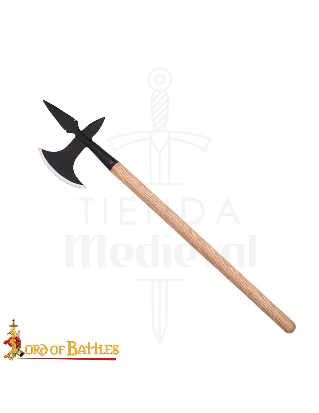 Der Griff aus hellem Holz wurde wegen seines angenehmen Tasts und seiner Flexibilität ausgewählt, damit jede Bewegung natürlich und sicher ist. Die Verbindung zwischen Kopf und Schaft, die mit einem festen Einsatz abgeschlossen ist, schafft ein stabiles Stück, das flüssige Manöver erleichtert und sich ideal für Live-Darbietungen, LARP-Events und Theateraufführungen eignet.