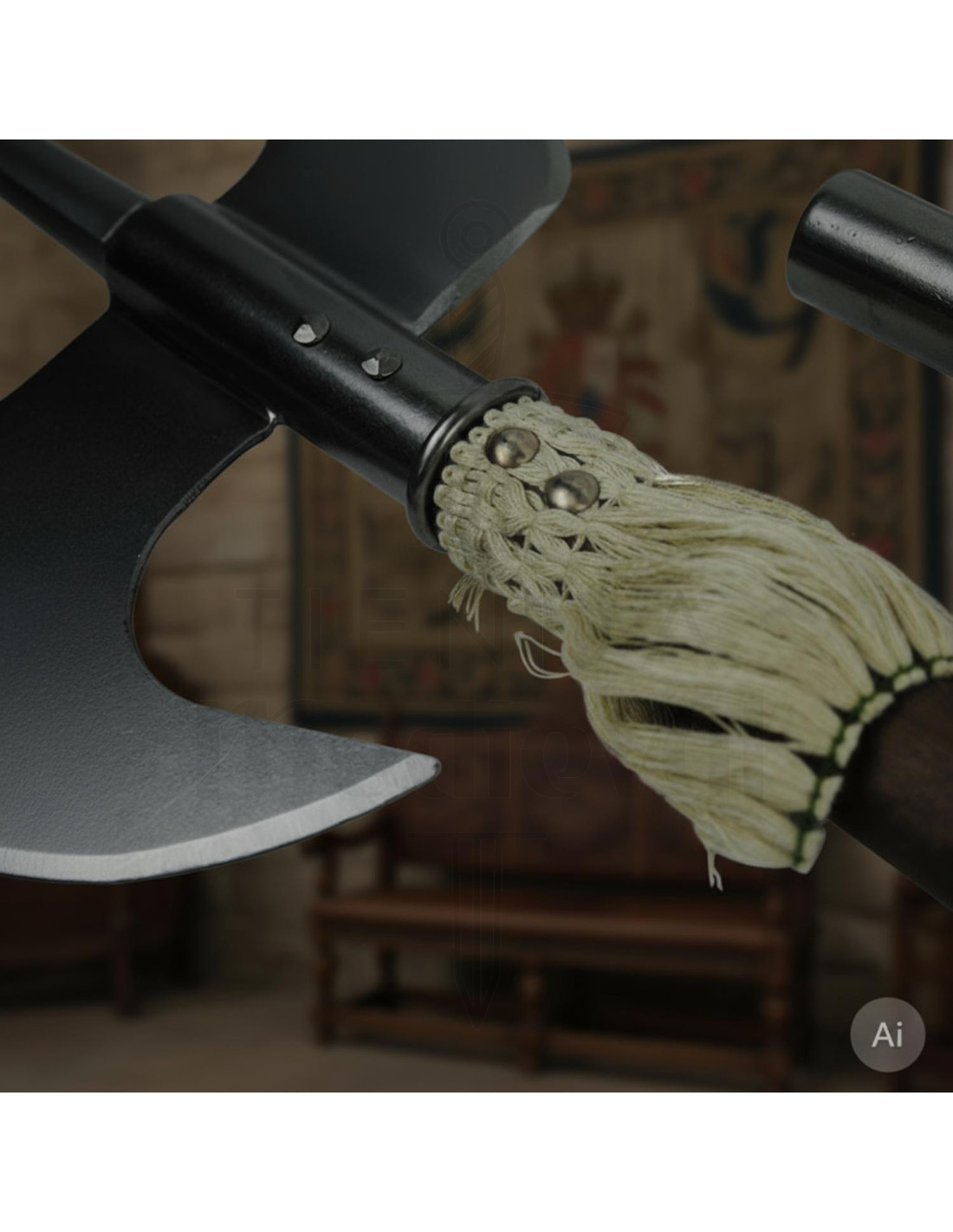 Einer der Hauptvorteile unserer Hellebarde ist die Zerlegung in zwei Teile, was den Transport und die Lagerung erleichtert. Darüber hinaus verfügt es über dekorative Quasten, die ihm einen Hauch von Authentizität und Eleganz verleihen.