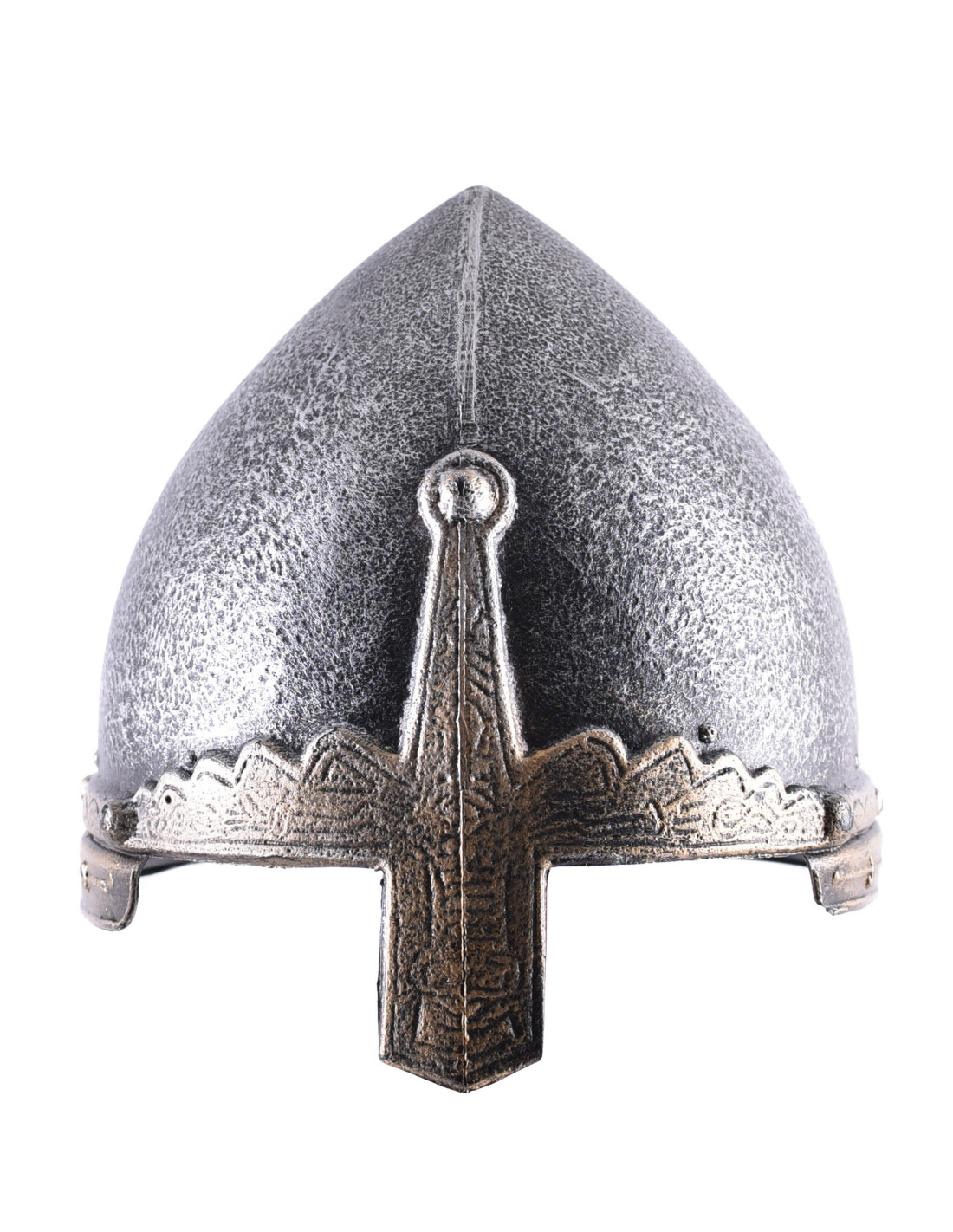 Normannenhelm aus Kunststoff für Kinder. Für den perfekten Auftritt als edler Ritter auf Mittelaltermärkten, LARP-Events, Kostümfesten, Fasching oder einfach nur beim Spielen im Haus braucht jeder kleine Krieger natürlich einen gut aussehenden Ritterhelm. Nasenhelme, auch Normannenhelme genannt, waren auch bei den Wikingern sehr beliebt. Dieser Nasenhelm für Kinder ist aus hochwertigem Kunststoff gefertigt. Es ist sehr leicht und geruchlos. Es hat ein authentisches und realistisches Aussehen, das den gealterten und vom Kampf getragenen Ritterhelm nachahmt. Bei Bedarf bietet es für zusätzlichen Schutz im Inneren auch genügend Platz für einen Deckel oder ähnliches. Es sollte auch Erwachsenen mit immer kleinerer Statur passen. Dieser Spielzeughelm ist nur für Kostümzwecke bestimmt und bietet keinen Schutz vor Stößen oder Stößen jeglicher Art.