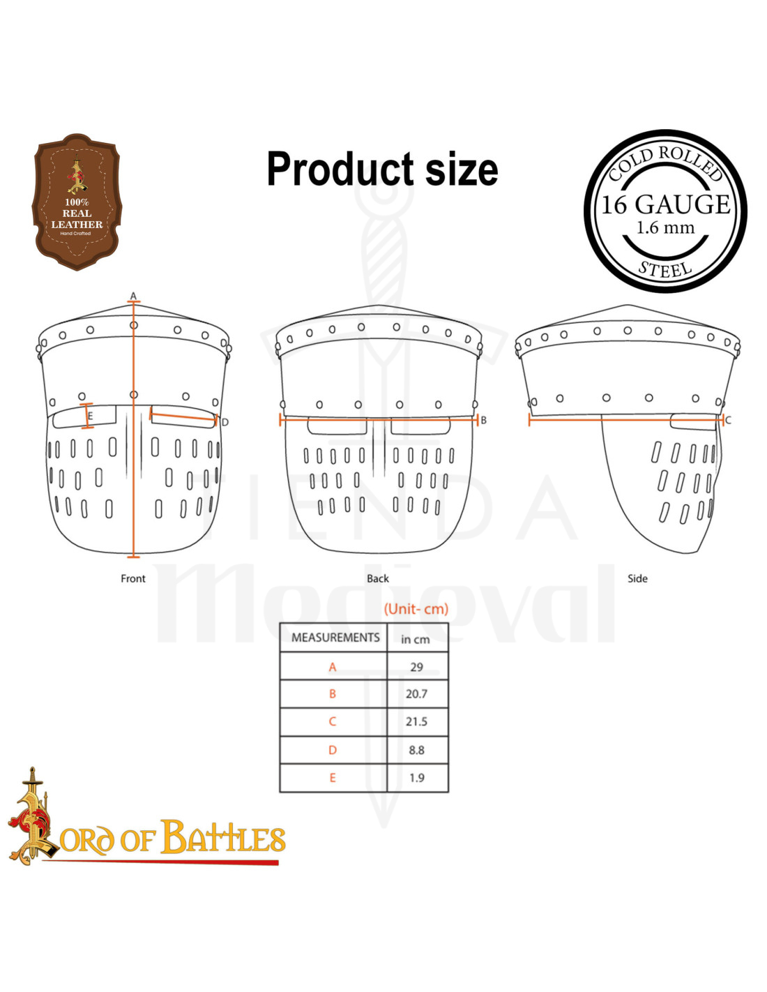 Mit einem ausgewogenen Gewicht passt sich dieser Helm bequem an den Kopf Erwachsener an und ist für verschiedene Größen geeignet, mit einem Innendurchmesser von bis zu 68 cm. Perfekt für Nachstellungen, Cosplay oder Ausstellungen, ermöglicht er es Ihnen, mit der Geschichte zu verbinden und den mutigen Geist der Kreuzritter wieder aufleben zu lassen. Zudem schützt eine temporäre Ölschicht vor Rost, bewahrt den Glanz und die Widerstandsfähigkeit im Laufe der Zeit. Ein trockenes Tuch genügt, um ihn in einwandfreiem Zustand zu halten.