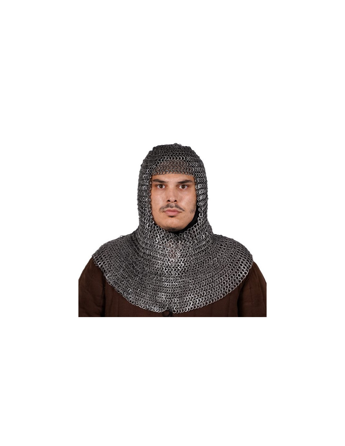 Schützen Sie Ihren Kopf mit Stil mit dem Toggle Riveted Flat Ring Executioner Chainmail! Dieser atemberaubende Henker ist handgefertigt aus hochwertigen Weichstahlringen und verfügt über eine natürliche Oberfläche, die ihm ein robustes, authentisches Aussehen verleiht.