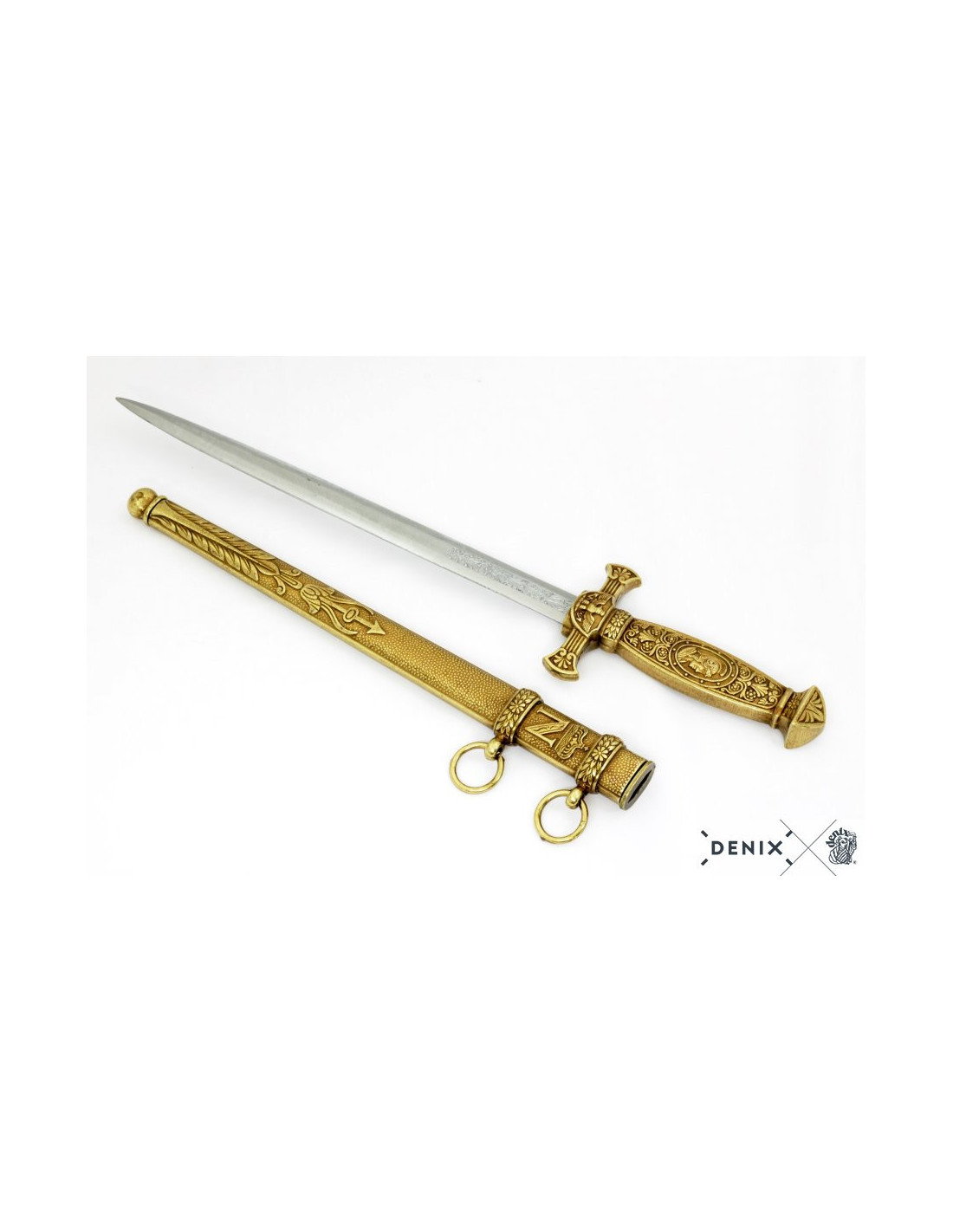 Mit der DENIX-Reproduktion von Napoleons Zierdolch erwerben Sie nicht nur ein Objekt, sondern ein Portal in die Vergangenheit. Tauchen Sie ein in die Majestät und Intrigen Frankreichs im Jahr 1809, wo Napoleons militärische Heldentaten den Ton angeben. Machen Sie diesen Dolch zum Mittelpunkt Ihrer historischen Sammlung!
