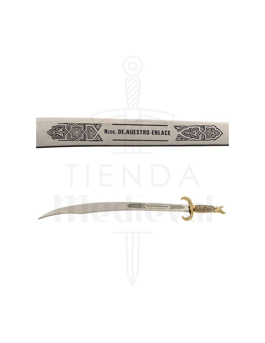 Dieses Schwert wird standardmäßig mit dem eingravierten Text „RDO. DE NUESTRO ENLACE“ geliefert, sodass Sie sich immer an diesen besonderen Tag erinnern werden. Darüber hinaus ist es in drei verschiedenen Größen erhältlich: Natural, Cadet und Children, um es an Ihre Bedürfnisse anzupassen.