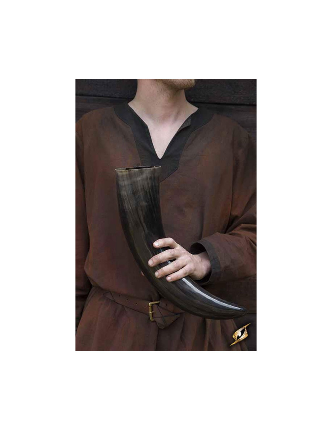 Dieses riesige Horn mit einem Fassungsvermögen von 1,5 Litern ist die perfekte Ergänzung für jeden Liebhaber der nordischen Mythologie oder Fan epischer Fantasy. Sein dunkles Finish verleiht ihm ein geheimnisvolles und einzigartiges Aussehen und hebt es von den anderen ab.
