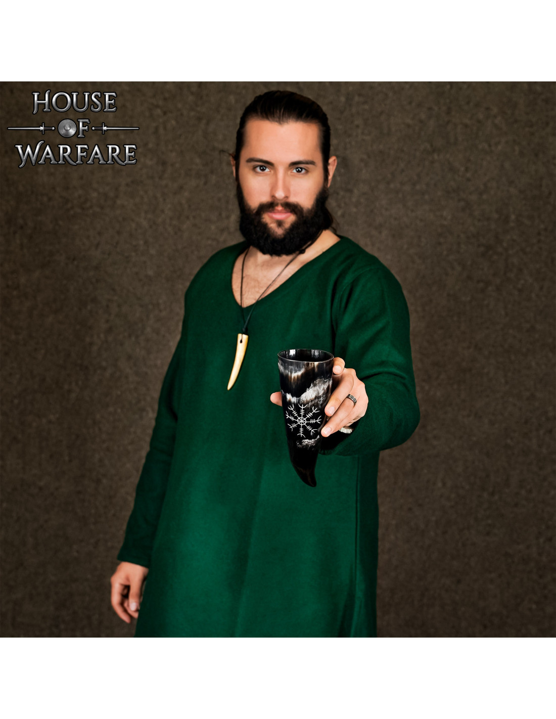 Tauchen Sie mit diesem handgeschnitzten Horn in die Geschichte und den Mut der Wikinger ein. Jeder Schluck ist eine Hommage an den Mut und den Schutz der alten Wikingerkultur!