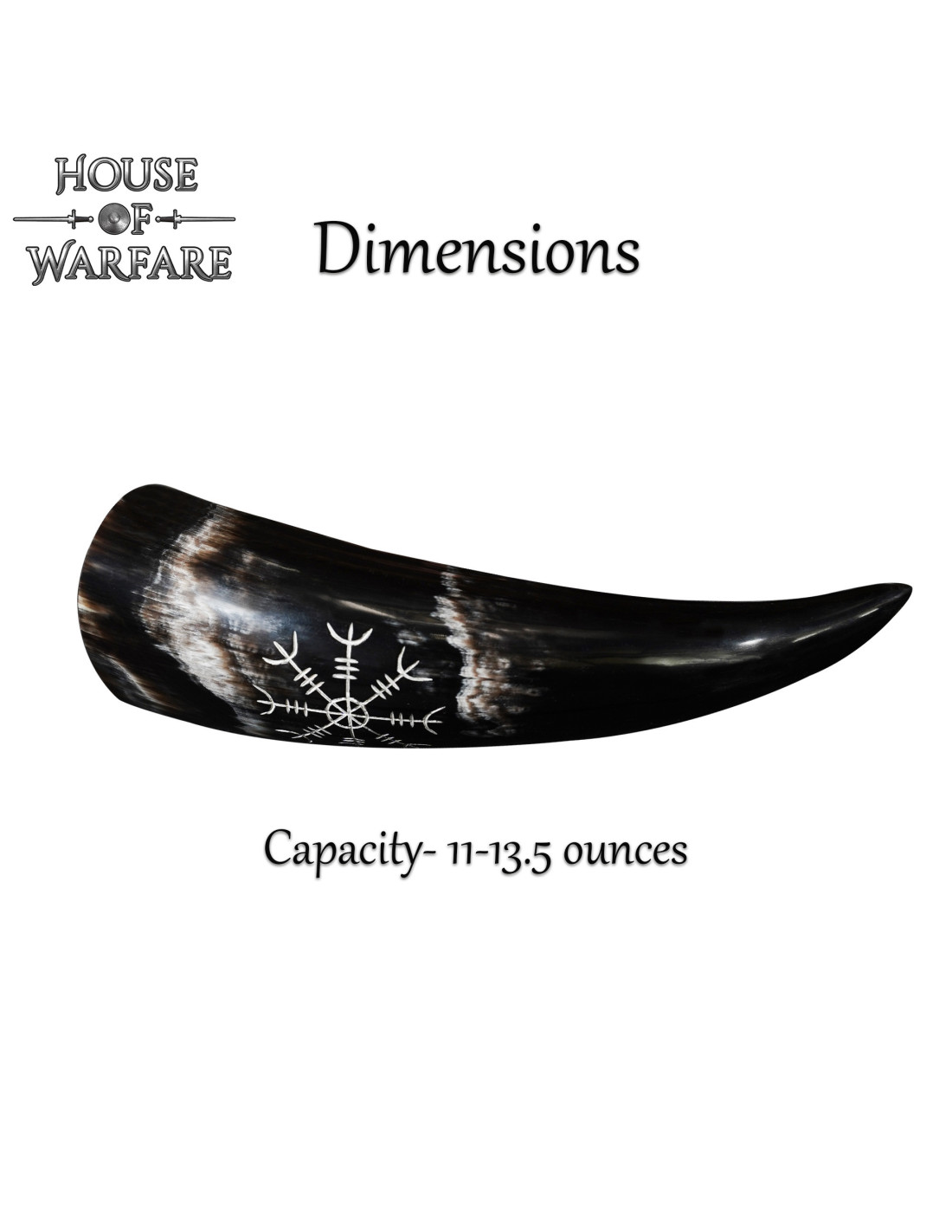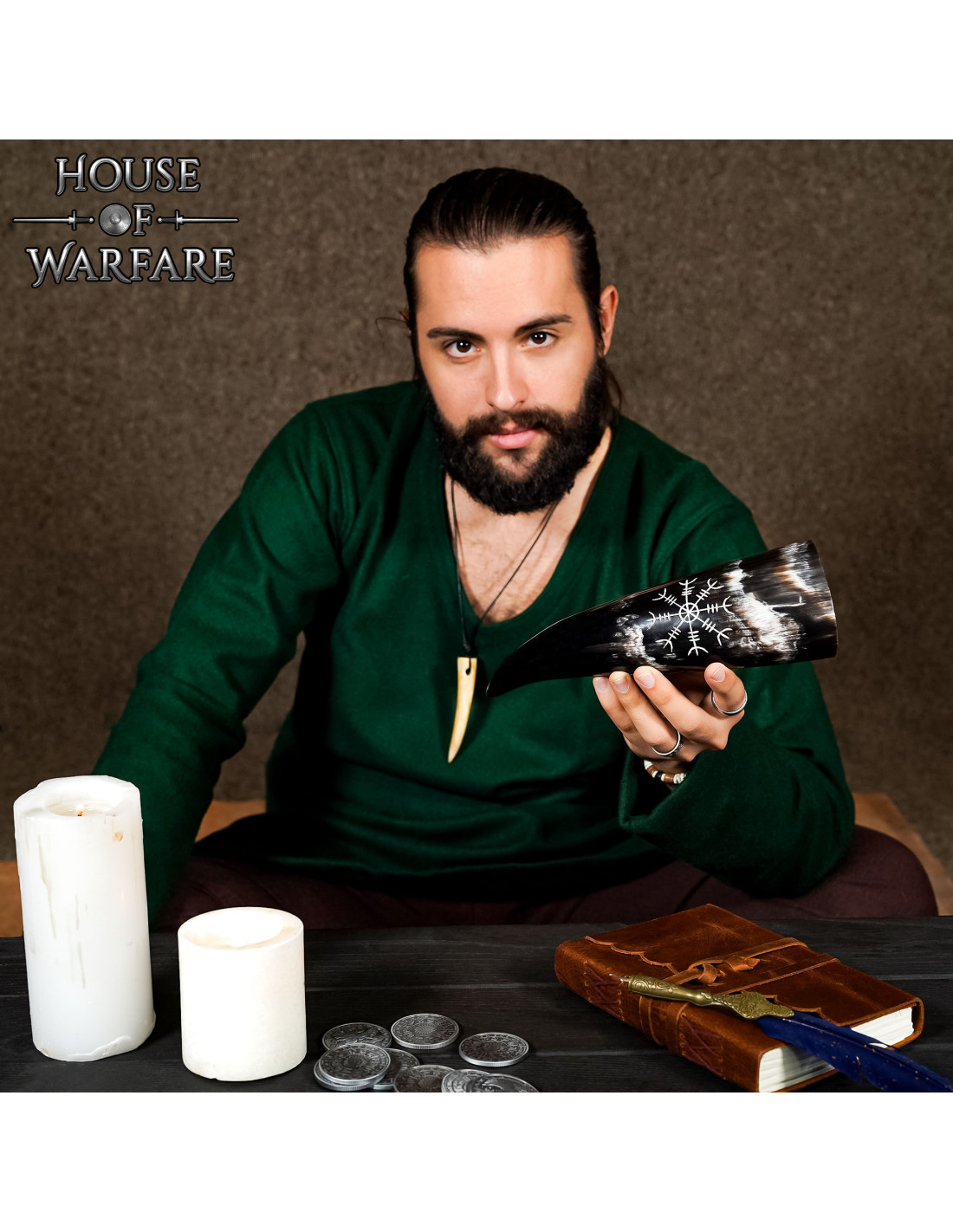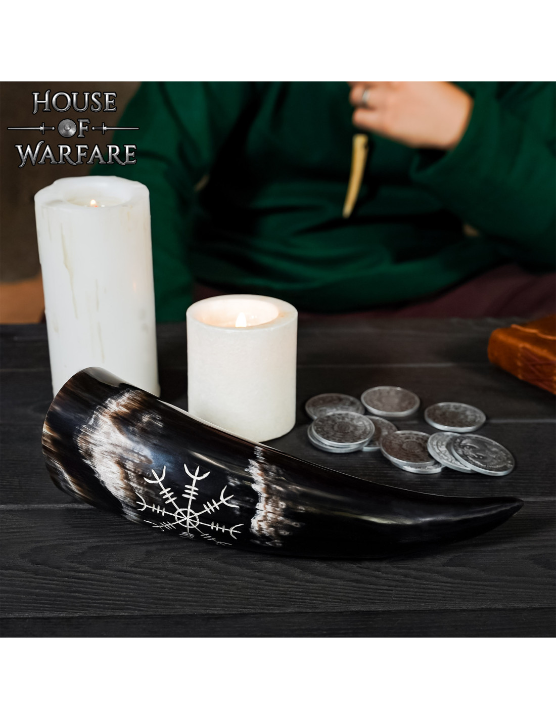 Dieses Horn ist nicht nur ein Trinkobjekt, es ist ein Symbol für den Schutz und die Tapferkeit der Wikinger. Bereiten Sie sich darauf vor, die Kraft und den Schutz des Aegishjalmur zu genießen, der von Hand in dieses seltene Horn geschnitzt wurde!