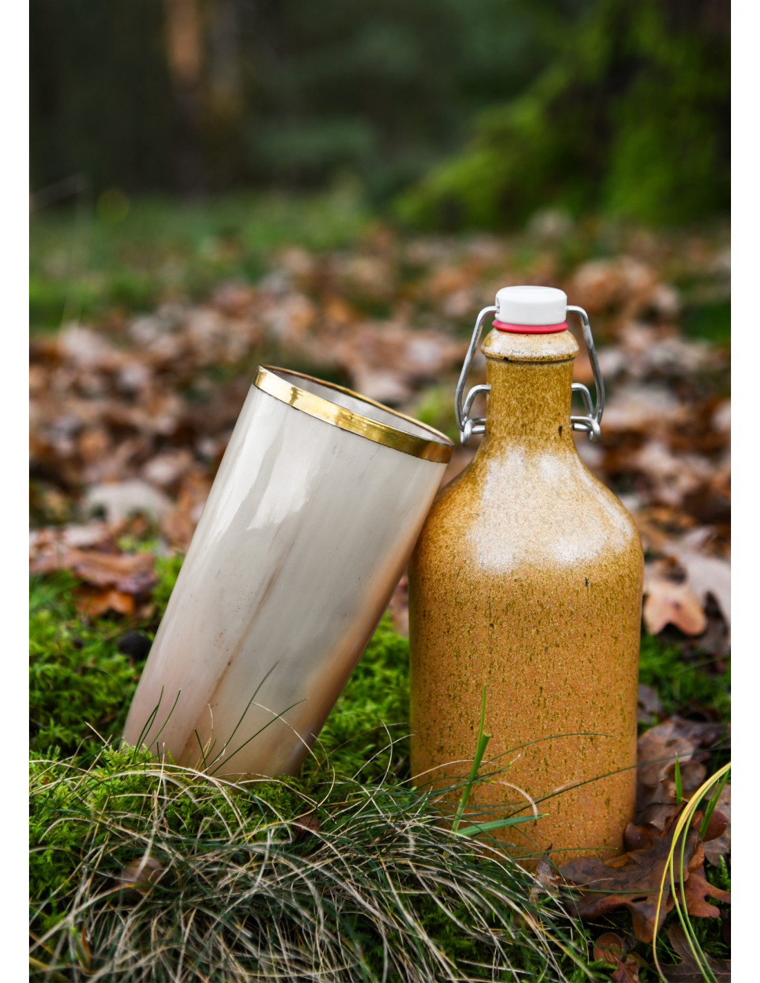 Entdecken Sie Authentizität in jedem Schluck mit unserem exklusiven Hornbecher mit Messingrand, ohne Griff!