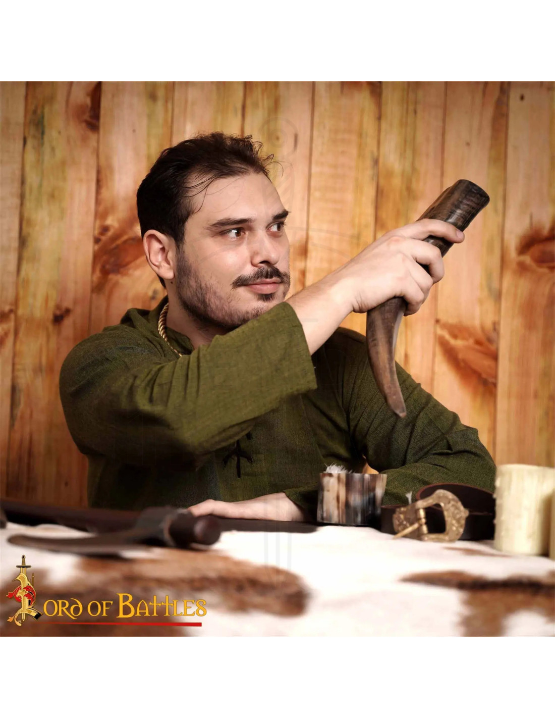 Wenn du ein unvergessliches Geschenk für Sammler von Wikinger-Getränken oder für einen Freund suchst, der von der Welt der mittelalterlichen Fantasie und der Norse-Kultur fasziniert ist, ist dieses Horn die perfekte Wahl. Mit dem Kauf dieses Wikinger-Büffelhorns 400 ml erwirbst du einen handwerklichen Schatz. Prost!