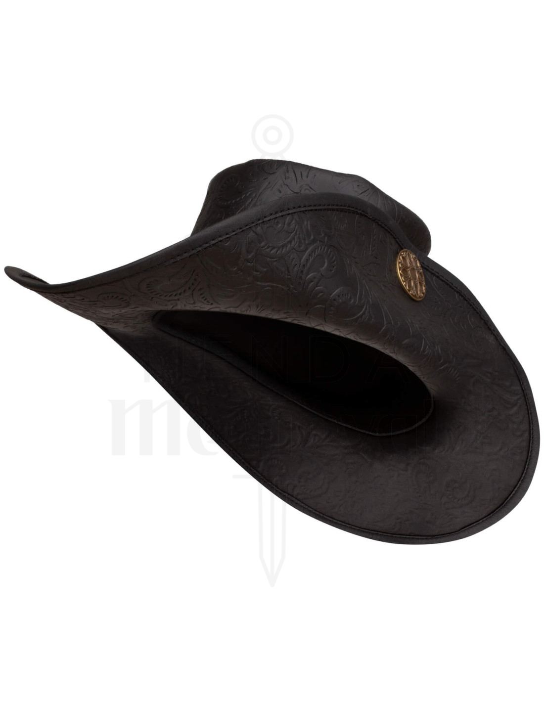 Der mittelalterliche Deluxe-Hut Modell Flandern in Schwarz ist ein Stück hoher Handwerkskunst, entworfen in Spanien aus erstklassigem Leder. Sein geprägtes und detailliertes Finish macht ihn zu einem robusten und auffälligen Accessoire, perfekt für diejenigen, die Authentizität und Eleganz zu einem Musketier-, Piraten-, Abenteurer- oder Schelm-Outfit hinzufügen möchten. Der breite Rand, getragen von einer fein gegossenen Münze, verleiht ihm eine Note von Raffinesse, die diesen Hut zu einem wahren Kunstwerk macht.