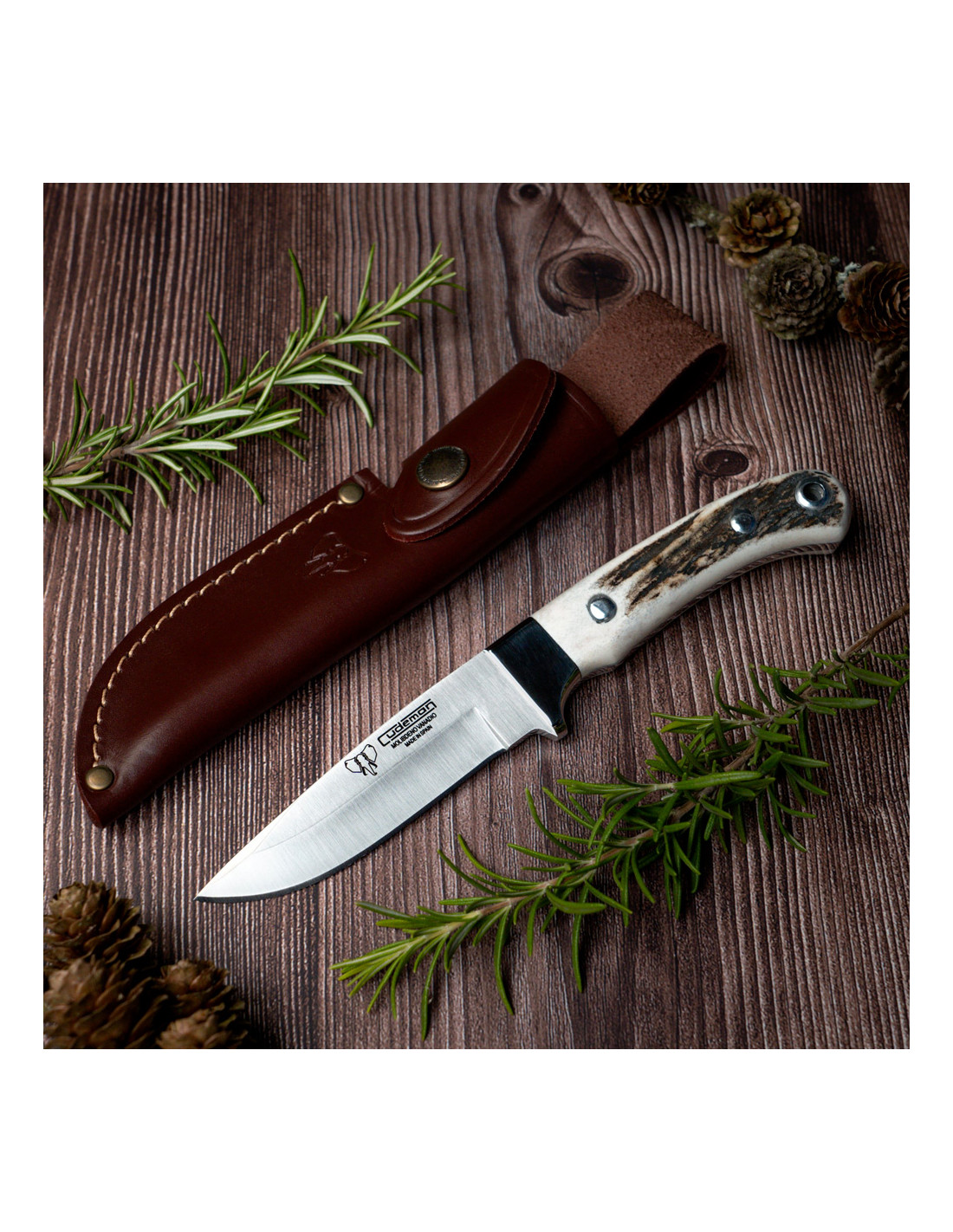 Das Cudeman-Messer ist nicht nur robust, sondern auch elegant. Sein polierter Hirschhorngriff bietet einen komfortablen und sicheren Halt, während die mitgelieferte braune Lederscheide für optimalen Schutz und bequemen Transport sorgt. Darüber hinaus verleiht die polierte A-304-Edelstahlzwinge dem Gesamtdesign einen Hauch von Raffinesse.