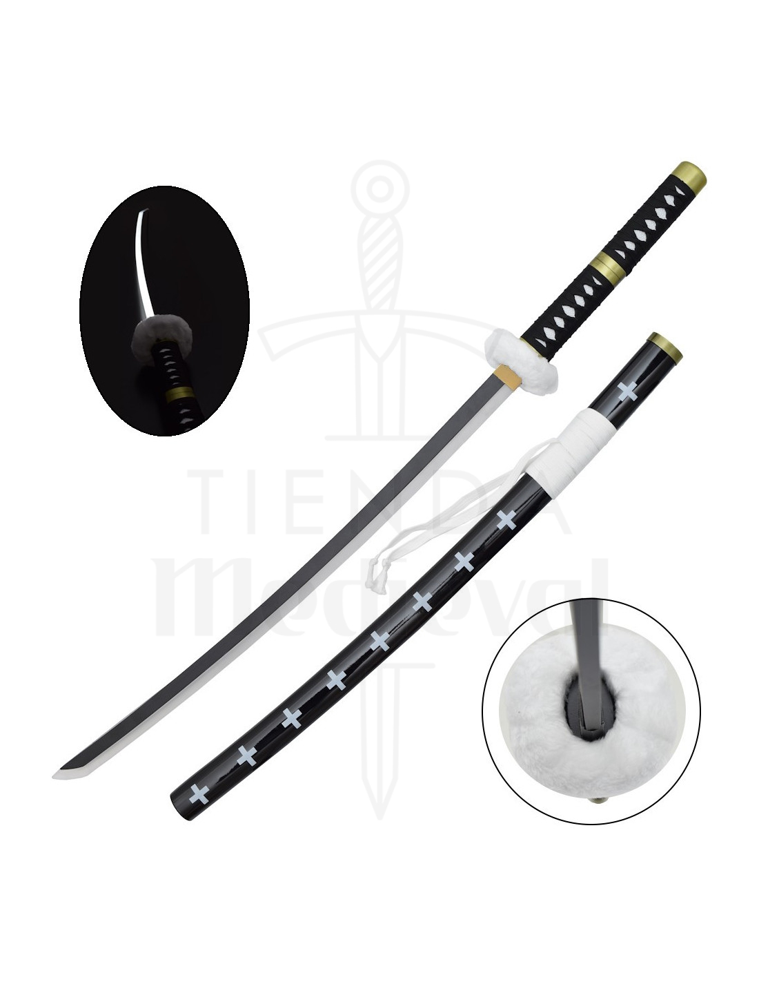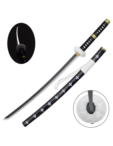 Bist du ein Fan der Serie 'One Piece' und träumst davon, ein Stück Abenteuer in deinem Raum zu haben? Diese von Trafalgar Law inspirierte Katana, einem der charismatischsten und strategischsten Charaktere des Animes, bietet dir eine einzigartige Möglichkeit, deine Leidenschaft zu zeigen. Obwohl sie ein ornamentales Objekt ist, fängt ihr sorgfältig gestaltetes Design die Essenz des Charakters ein und macht jeden Blick zu einer Erinnerung an seinen Mut und seine List.