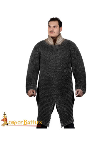 Dieses von unseren erfahrenen Kunsthandwerkern in sorgfältiger Handarbeit gefertigte Kettenhemd bietet mit Sicherheit einen zuverlässigen Schutz auf dem Schlachtfeld. Tragen Sie es unter Ihrem Wappenrock und kombinieren Sie es mit einem Gürtel, der eine bessere Gewichtsverteilung ermöglicht und das Tragen von Kettenhemden erleichtert.