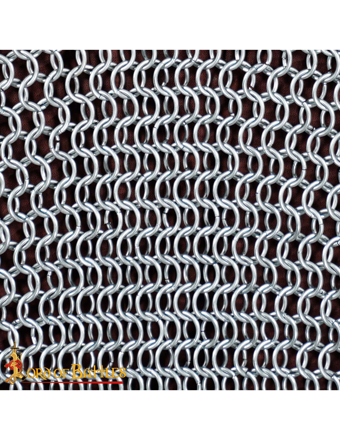 Die miteinander verbundenen Ringe schaffen ein flexibles und robustes Gewebe, das das Gewicht verteilt, Druckpunkte vermeidet und lange Tage in simulierten Kämpfen, Proben oder Paraden erleichtert. Die Stahloberfläche mit geölter Behandlung reduziert Reflexionen, hebt das Aussehen eines in der Schlacht benutzten Stücks hervor und erleichtert die Pflege für Ausstellungen oder fortwährenden Gebrauch.