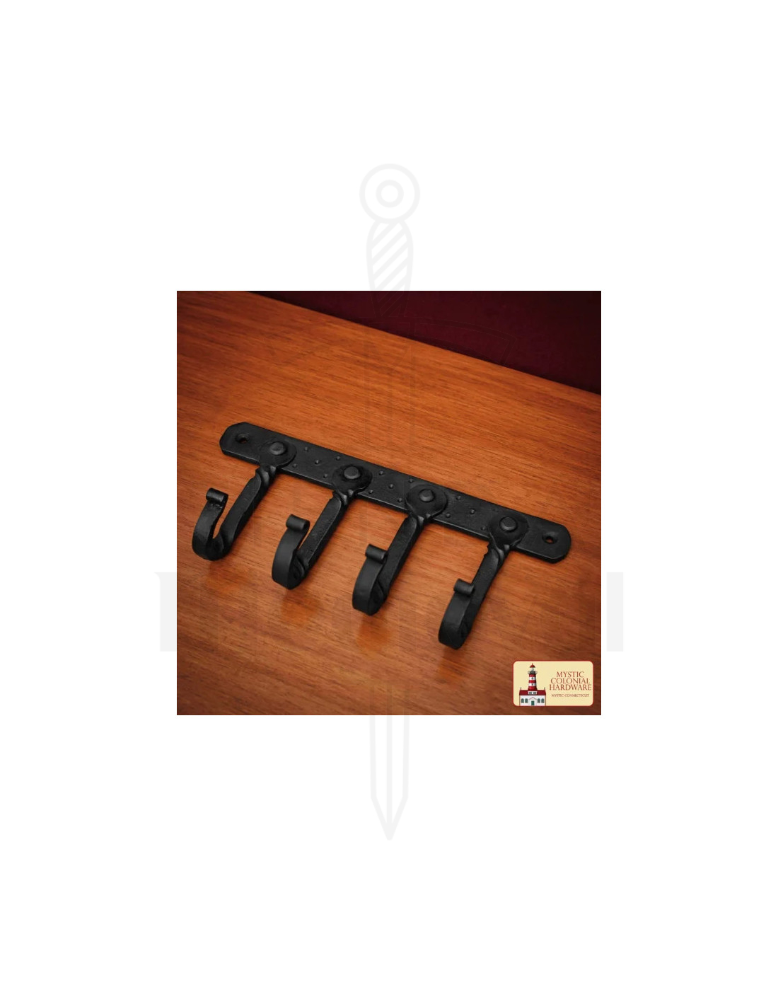 Diese Garderobe verbindet die Widerstandsfähigkeit des Gusseisens mit einem geölten schwarzen Finish, das die handgeschmiedete Textur hervorhebt und ein Stück schafft, das neben seiner Funktion als Halterung auch Charakter und Wärme in den Raum bringt. Die vier Haken bieten vielseitige Aufhängungslösungen für Mäntel, Taschen, Handtücher oder Schürzen und organisieren Ihren Alltag mühelos.