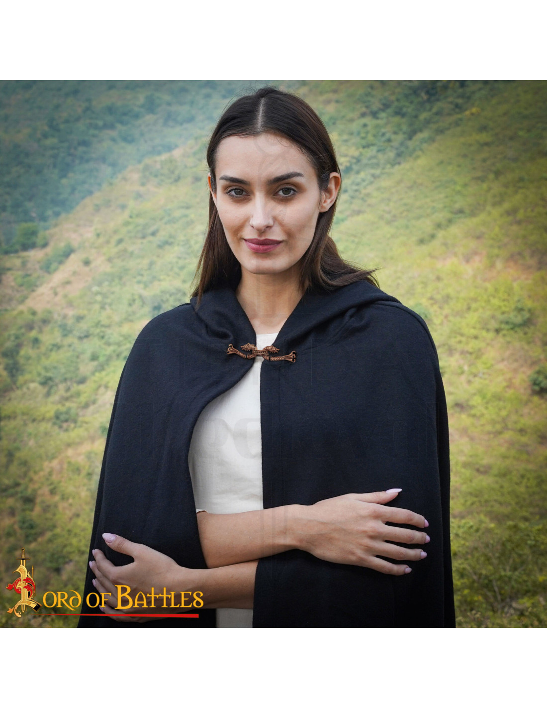 Dieser vikinger Umhangverschluss mit Wolfsdesign aus gealtertem Bronze wird von Hand mit der traditionellen Wachsausschmelztechnik hergestellt, was sich in klaren Reliefs und einer einzigartigen Patina in jedem Stück niederschlägt. Diese antike Oberfläche verleiht nicht nur visuelle Authentizität, sondern ermöglicht es, dass jeder Verschluss seine eigene Geschichte erzählt und Charakter zu Umhängen und Tuniken hinzufügt, ohne dass weitere Ausschmückungen notwendig sind.