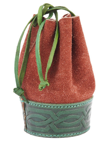 Suchst du das perfekte Accessoire, um dein mittelalterliches oder Fantasy-Outfit zu vervollständigen? Diese **mittelalterliche braun-grüne geprägte Almosentasche** bietet dir die ideale Kombination aus Funktionalität und authentischem Stil. Hergestellt aus pflanzlichem Leder, verbindet ihr Design die Weichheit von Wildleder im oberen Bereich mit der Robustheit des dickeren Leders am Boden, was Langlebigkeit und einen einzigartigen Charakter in jedem Stück garantiert. Die geprägte Oberfläche mit Farbfinish verleiht ihr den abgenutzten, geschichtsträchtigen Look, als wäre sie bei alten Abenteuern gefunden worden.