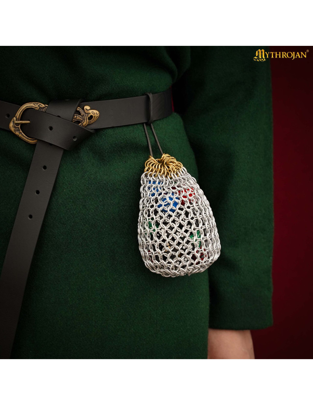 Das schwarze Kordel mit Stopperknoten lässt sich mühelos öffnen und schließen, um Würfel, Münzen oder Tokens während des Transports sicher aufzubewahren. Diese Kombination aus intuitivem Verschluss und metallischem Gewebe schützt den Inhalt und verleiht beim Bewegen einen charakteristischen Klang, der die Atmosphäre am Tisch oder auf mittelalterlichen Märkten unterstreicht.
