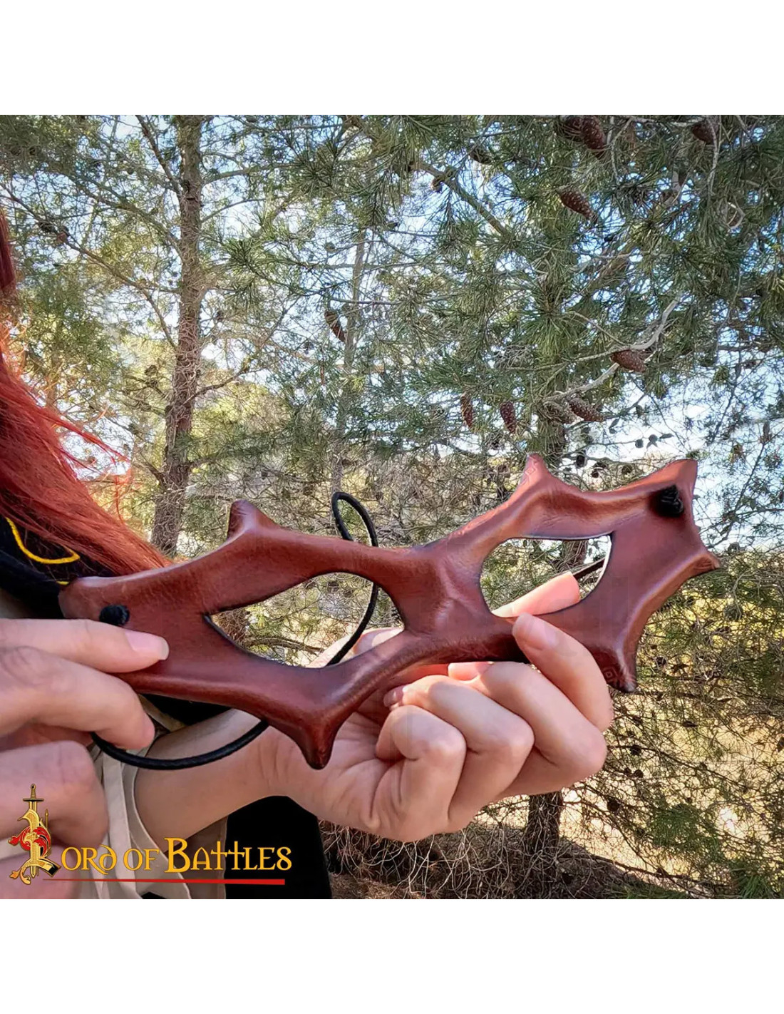 Handgefertigt aus echtem, dunkelbraunem Leder mit matter Oberfläche, bietet diese Maske ein Gefühl von Authentizität, das deine Darbietung hebt, ohne dabei an Komfort einzubüßen. Ihre feste Struktur behält die Form während intensiver Szenen, während die ovalen Ausschnitte eine klare Sicht ermöglichen, damit du dich mit Zuversicht in Kämpfen, Erkundungen oder Auftritten bewegen kannst.