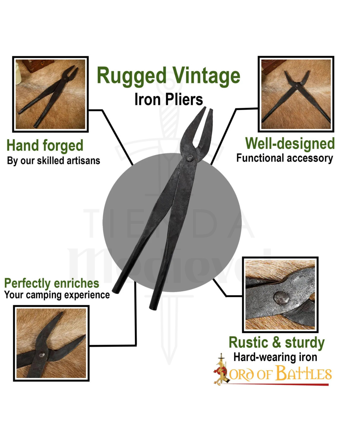 Geben Sie sich nicht mit gewöhnlichen Zangen zufrieden, sondern entscheiden Sie sich für die Authentizität und Widerstandsfähigkeit unserer mittelalterlichen Zangen aus Schmiedeeisen. Entdecken Sie eine neue Art, Ihr nächstes Outdoor-Abenteuer stilvoll und sicher zu erleben.