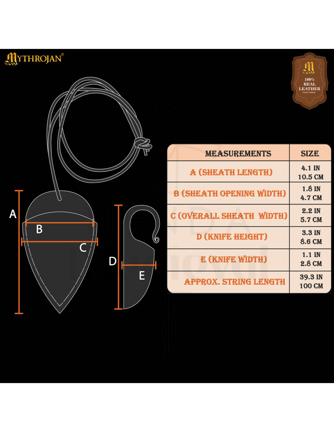 Das Messer wird mit einer ungeschliffenen Klinge geliefert, was eine sichere und authentische Verwendung gewährleistet. Es kann jedoch geschärft werden, wenn Sie es in ein funktionales Werkzeug verwandeln möchten. Es enthält einen Lederschnur, um es bequem um den Hals zu tragen oder an der Taille zu befestigen – ideal für Festivals, Reenactments, besondere Geschenke oder Sammlerstücke.