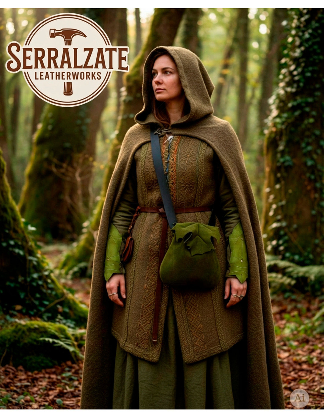 Entwickelt für diejenigen, die mit Pflanzen und Geweben des Waldes arbeiten, bietet das grüne Lederfinish ein Gefühl von Griff und Gleiten, das das Sammeln von Kräutern oder das Manövrieren an Dornen erleichtert, ohne die Zartheit zu opfern. Diese Form umschließt das Handgelenk bequem und ermöglicht freie, fließende Bewegungen – ideal für präzise Aufgaben oder für das Tragen über Ärmeln, wenn du im Freien arbeitest.
