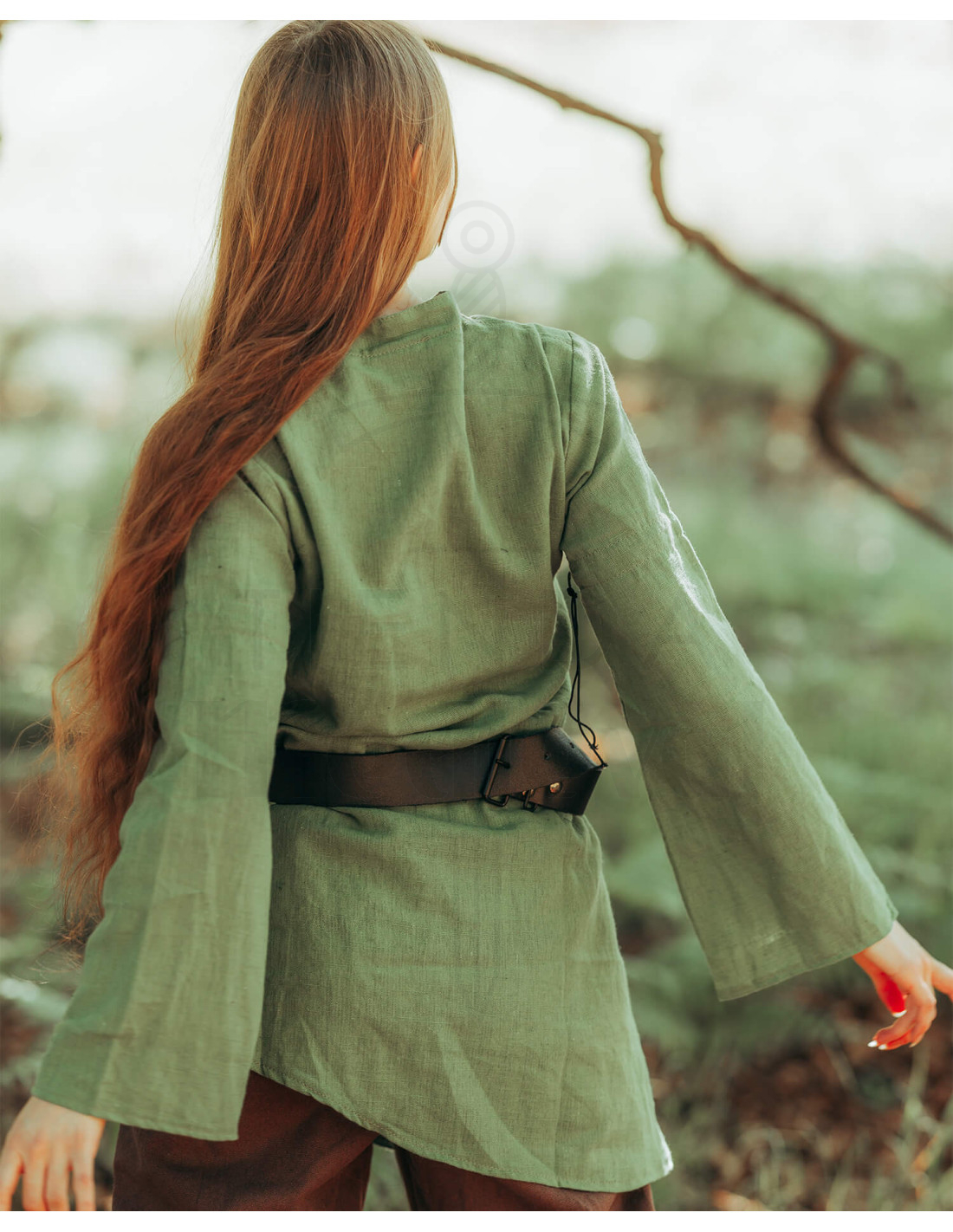 Suchen Sie ein Kleidungsstück, das Komfort und Stil bei Ihren Abenteuern oder Themenveranstaltungen vereint? Unser mittelalterliches Leinen-Blusenkleid Modell 'Galatea' in einem wunderschönen Grünton ist genau das, was Sie brauchen. Es wurde entworfen, um ein frisches und leichtes Gefühl zu vermitteln, das Gewebe aus 50 % Leinen und 50 % Baumwolle sorgt für eine bessere Luftzirkulation und hält Sie während langer Tage bequem.