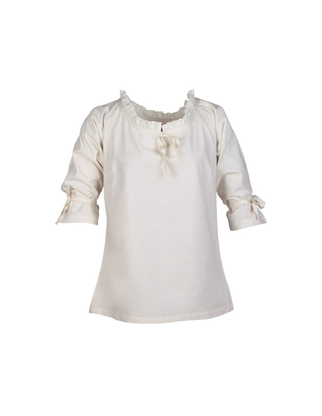 Möchten Sie wie eine echte mittelalterliche Jungfrau aussehen? Mit der Mittelalterbluse für Damen Modell Birga in Weiß versetzen Sie sich in die Zeit der Ritter und Burgen.