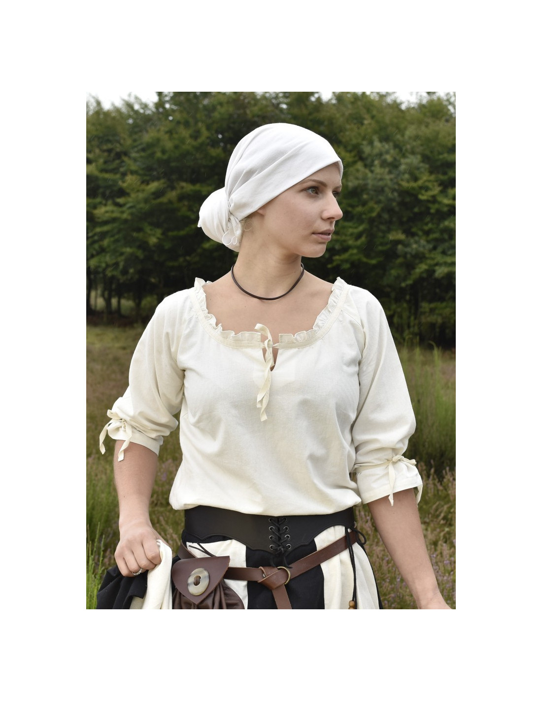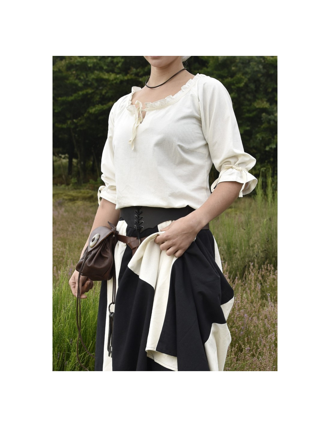 Die Birga-Bluse lässt sich ideal mit langen Röcken, taillierten Hosen oder sogar mit einem Korsett kombinieren und sorgt so für einen authentischen und einzigartigen Look. Sie können wie eine edle Hofdame oder wie der gefürchtetste und mutigste Krieger aussehen.