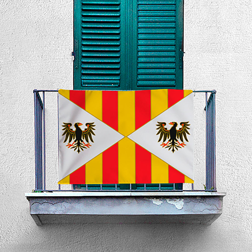 Mittelalterliche orangefarbene Fleur-de-Lis-Fahne, verschiedene Größen