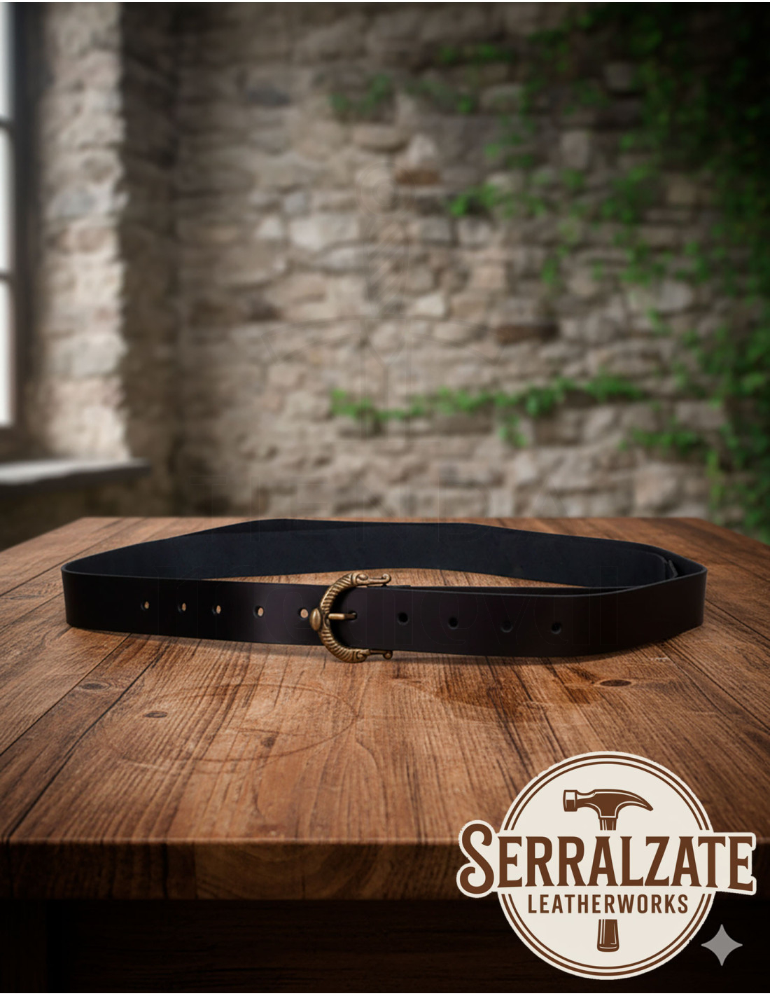 Bitte beachten Sie, dass es sich bei diesem handgefertigten Produkt um Einzelstücke handelt, sodass leichte Variationen im Schwarztön und den Abmessungen möglich sind – jede ist ein Unikat. Mehr als ein Gürtel: ein Symbol für Qualität und Design, gefertigt mit Hingabe. Kaufen Sie dieses Kunstwerk und tragen Sie ein Stück des mittelalterlichen Erbes, neu interpretiert von Serralzate LeatherWorks.